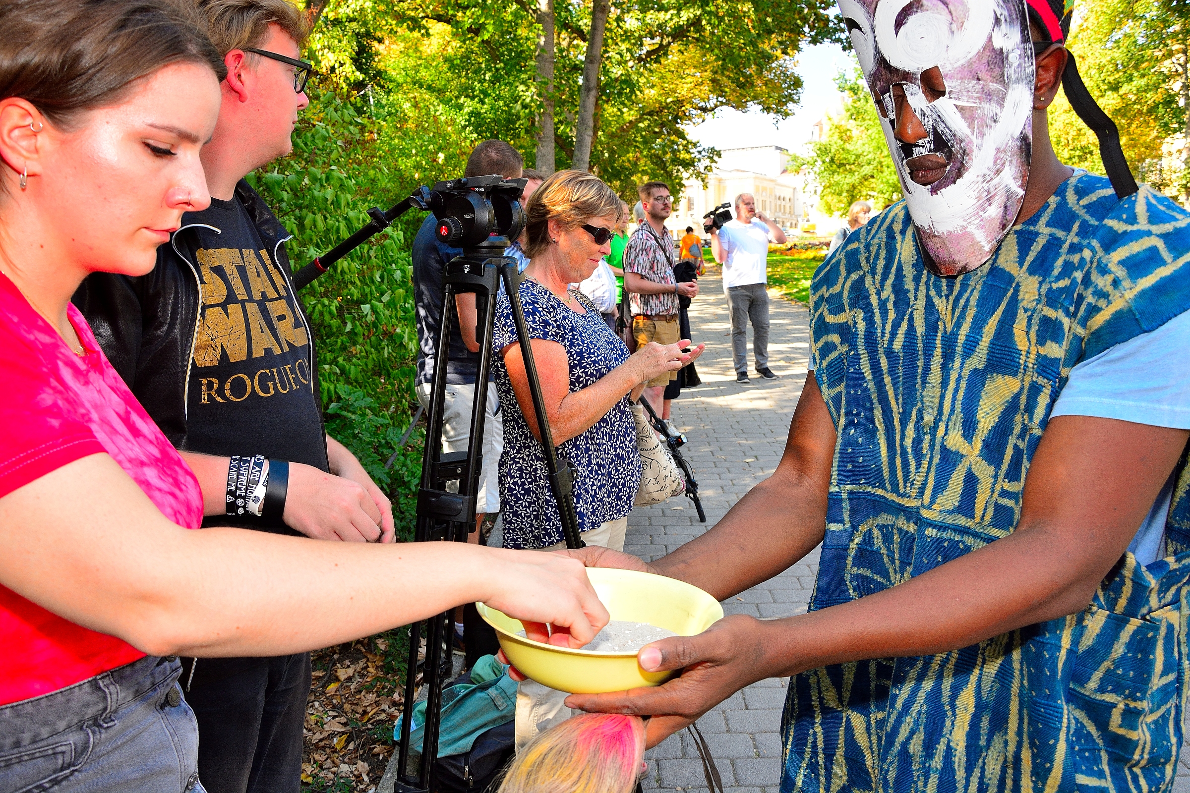 Die mittlerweile vierte Kunstaktion der Oper Halle mit dem Titel „L’Africaine“ im Rahmen des Kreativdialogs fand heute wieder in der Nähe der Aussichtsplattform am Joliot-Curie-Platz statt.