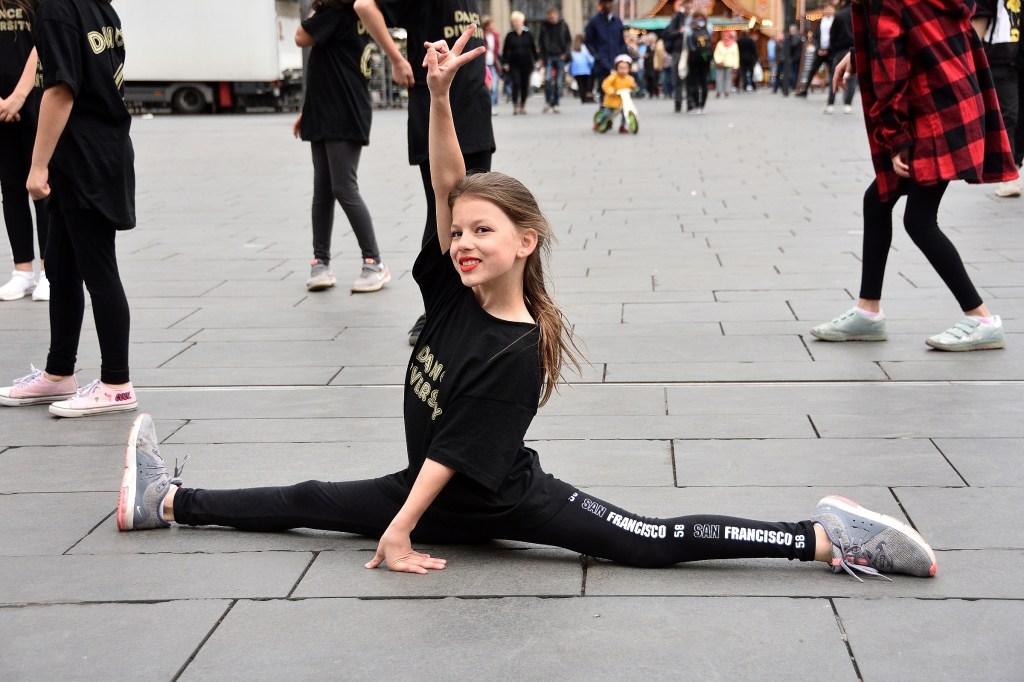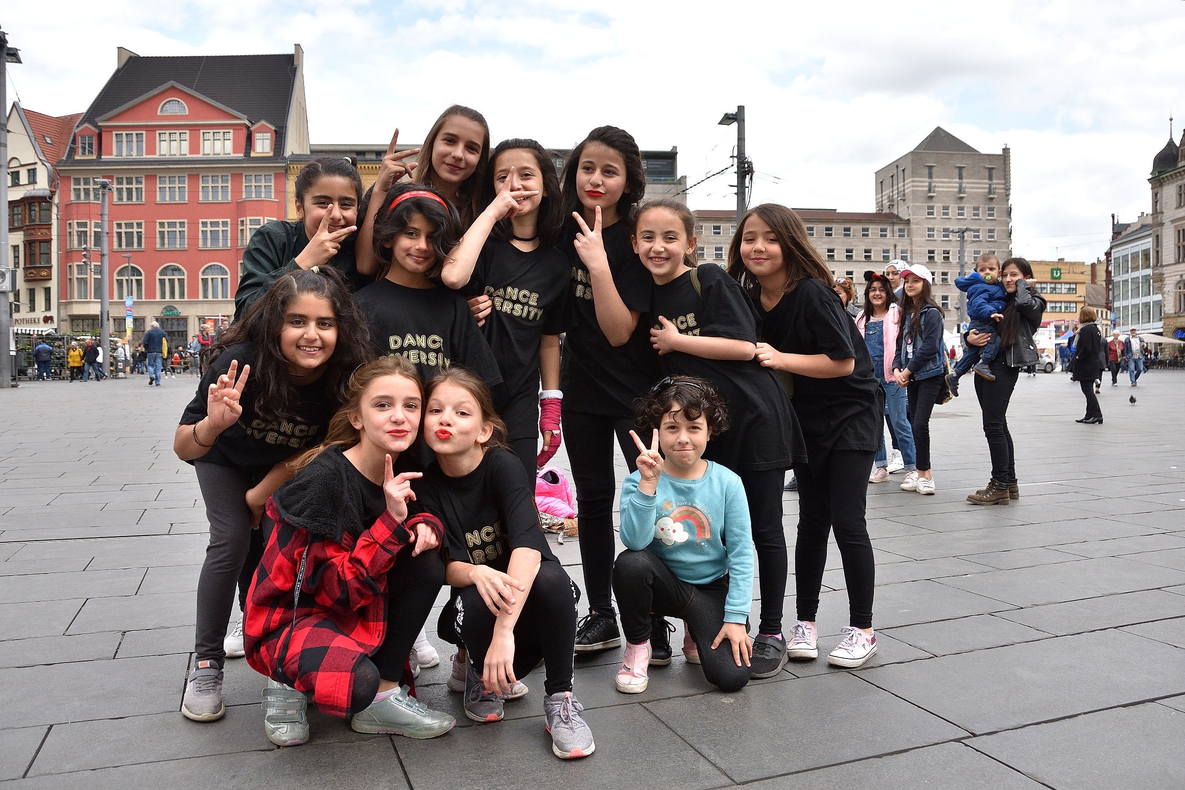 Die Choreografie zum Einüben war im Vorfeld über ein Tutorial auf der Webseite von UDC Halle abrufbar hochgeladen worden, so dass es nur wenig Zeit brauchte, die Tanzschritte auf dem Markt vor dem eigentlichen Flashmob zu üben.