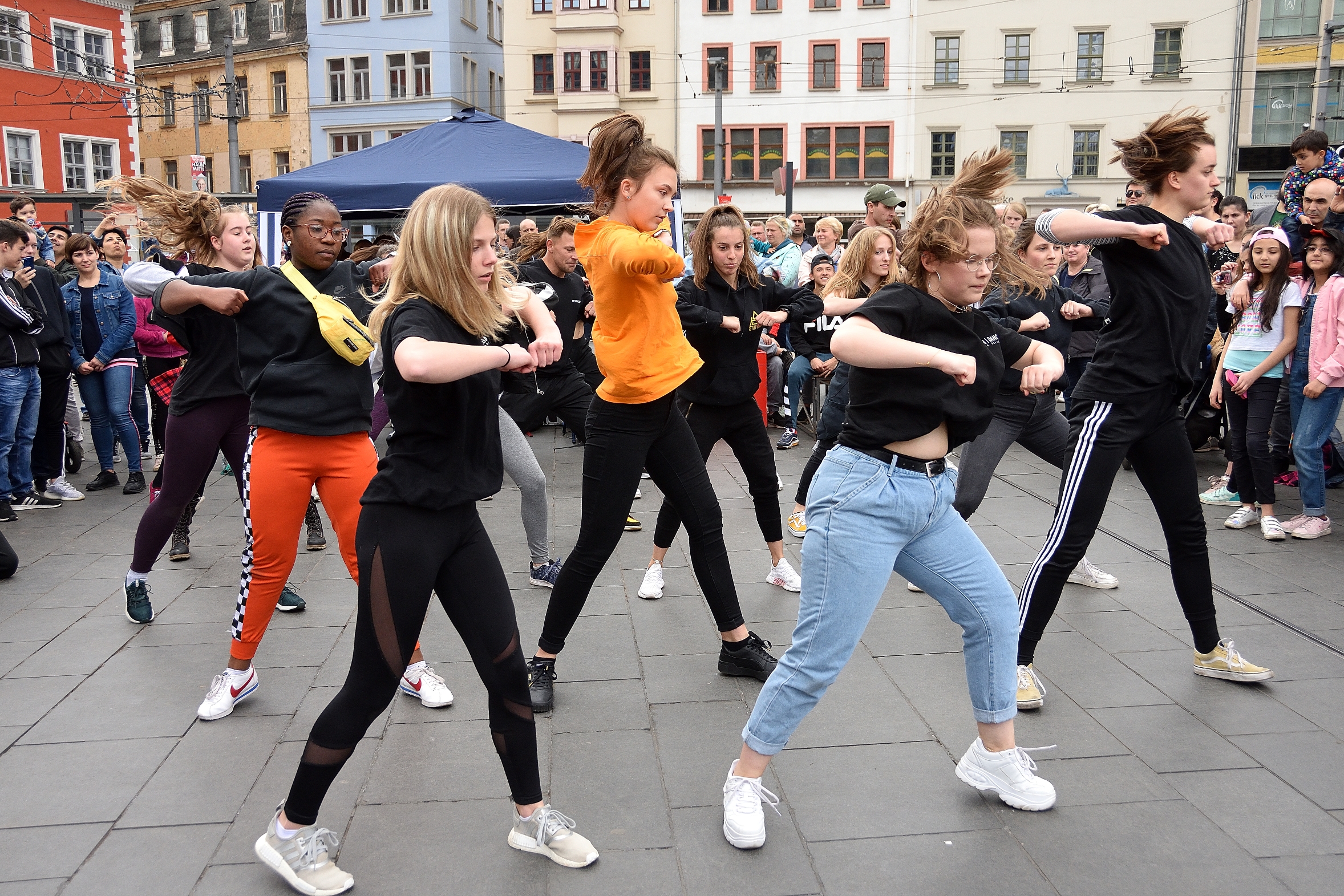 Zum TanzFlashmob auf dem Marktplatz von Halle hatten sich an diesem Sonntag wieder viele bewegungsfreudige Hallenser eingefunden.