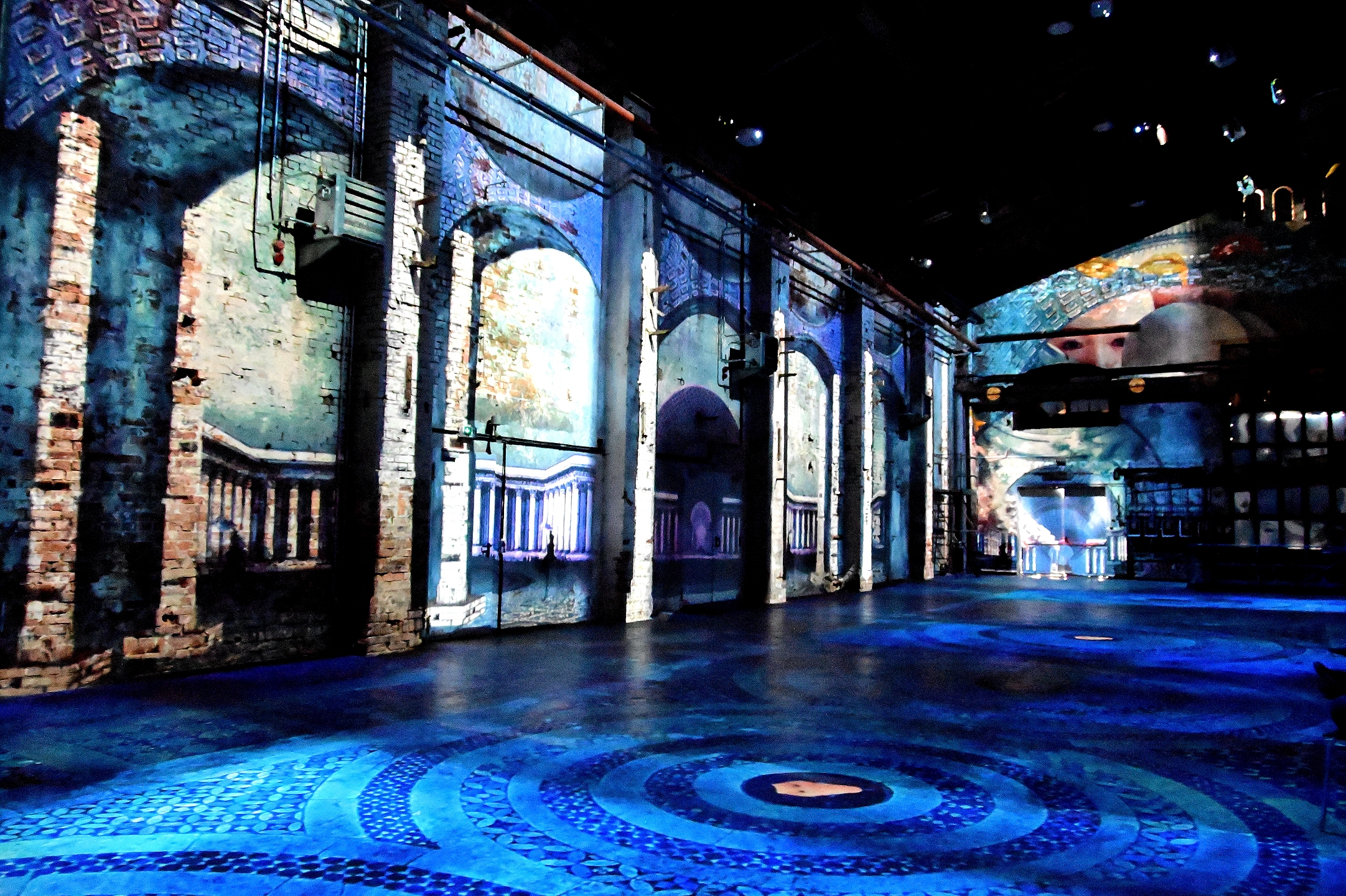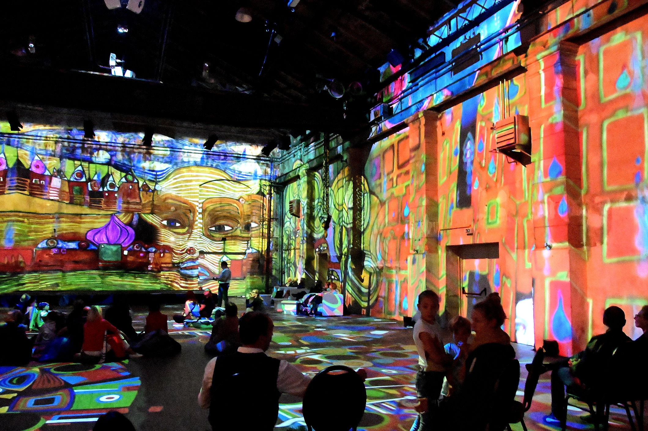 Es ist eine einzigartige Licht- und Tonstimmung in den alten Werkhallen. Mittelpunkt im Kunstkraftwerk Leipzig [www.kunstkraftwerk-leipzig.com] sind die multimedialen Videoinstallationen. Video für Video, in zwei großen Werkhallen vorgeführt kann man mit einem erschwinglichen Tagesticket den ganzen Tag verbringen und sich von den bewegten Bildern berauschen lassen. Kunstwerke bekannter Künstler wie Leonardo da Vinci, Rafael, Michelangelo oder Friedensreich Hundertwasser wirken in den groß dimensionierten Installationen auf die Zuschauer ein. Musikalisch begleitet von Bach und sphärischen Klängen ist es ein Rausch für die Sinne und wirkt erstaunlich beruhigend. Die raue Innenseite der nicht bearbeiteten Wände und Decken, die teilweise noch den Charme der vorher beherbergten Industrie abbilden, verstärkt die Bildgewalt noch zusätzlich.