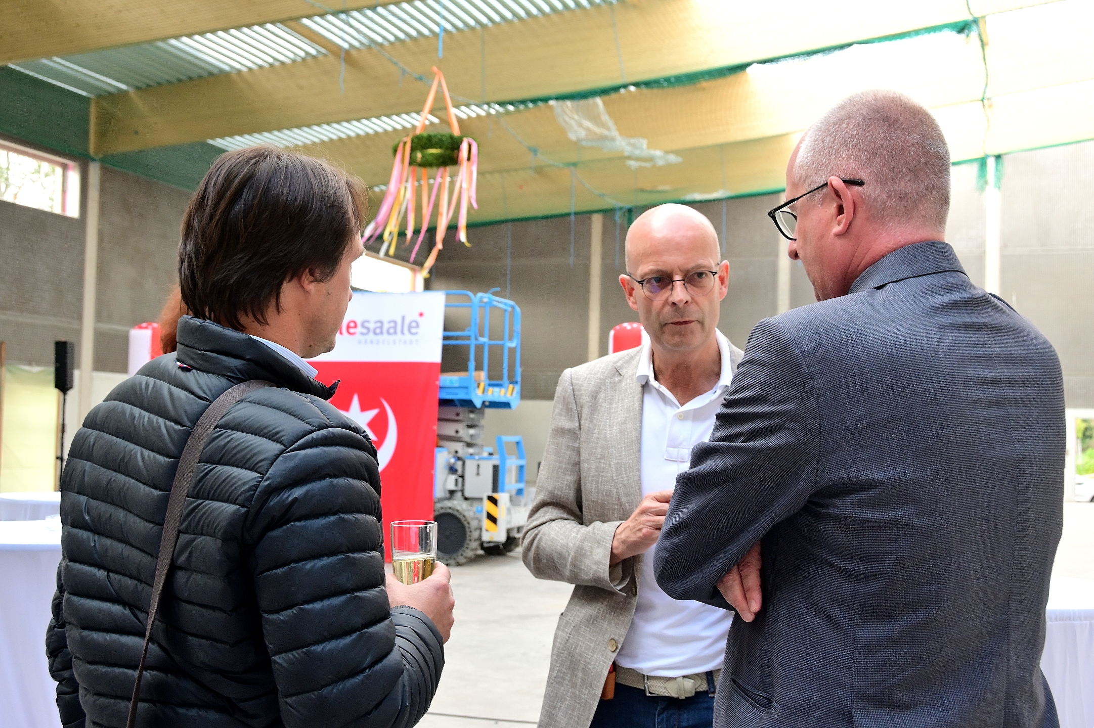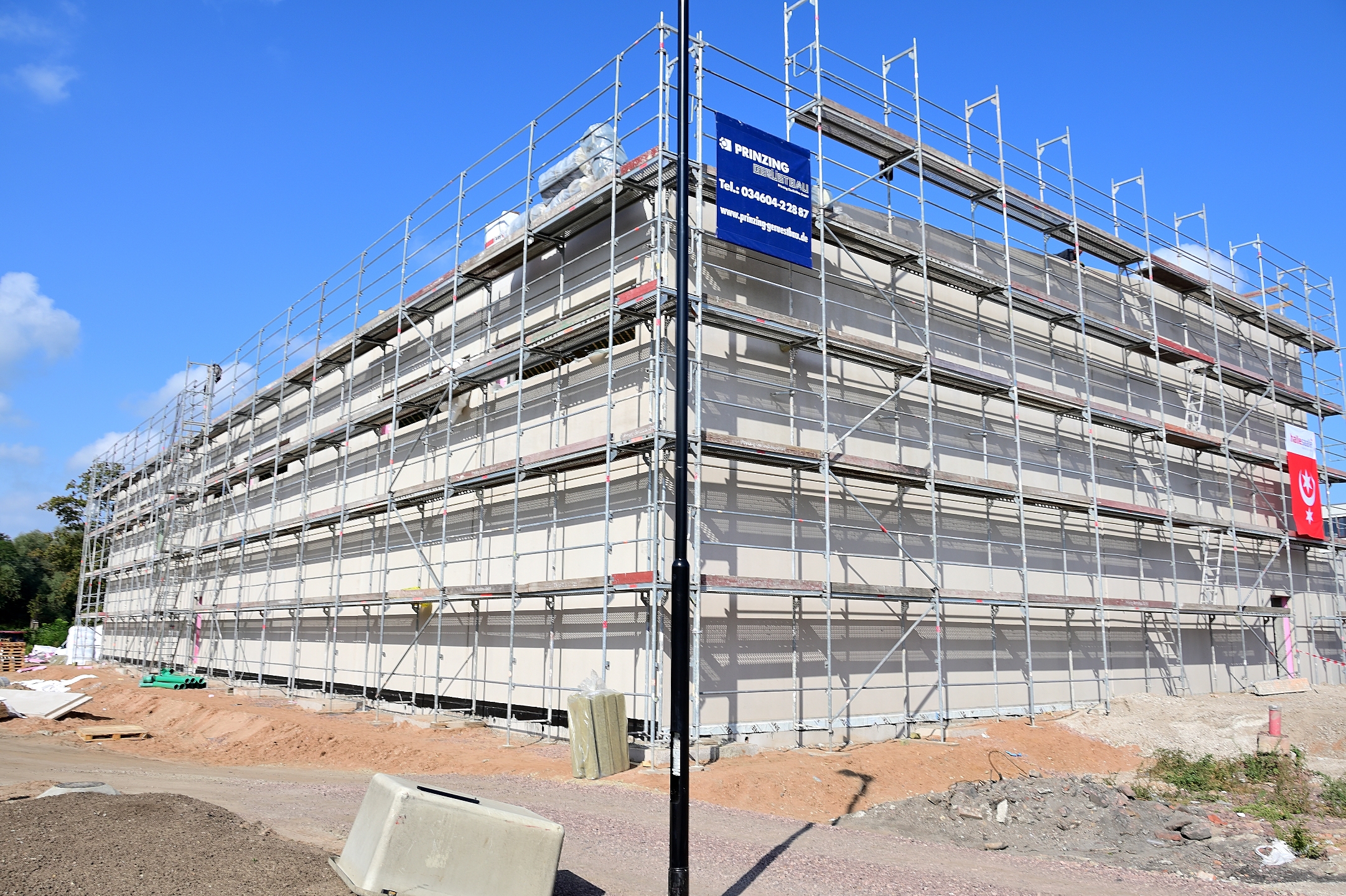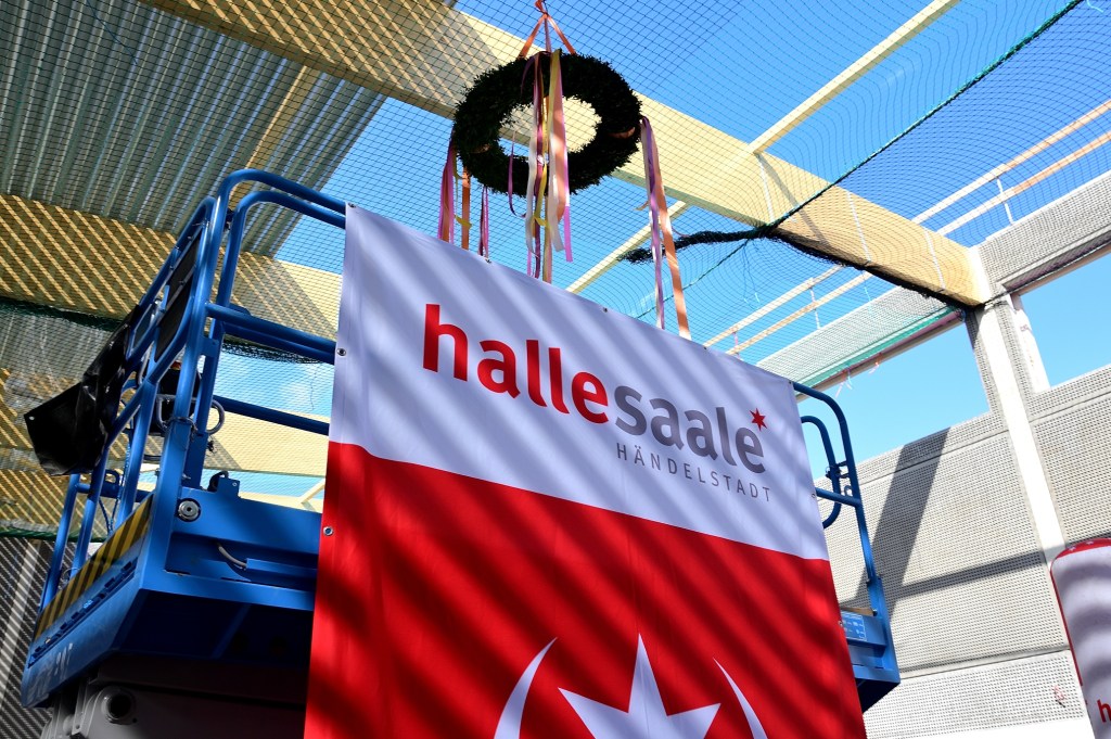 Als Teil des neuen Stadtquartiers auf dem Holzplatz, in Nachbarschaft des Gasometers, wurde heute der neuen Sporthalle die Richtkrone aufgesetzt. Die Halle ist Bestandteil der „Holzplatzschule“, die erst am 15. August 2019 zur Nutzung übergeben wurde und Zweifeldturnhalle für den Schul- und Vereinssport.