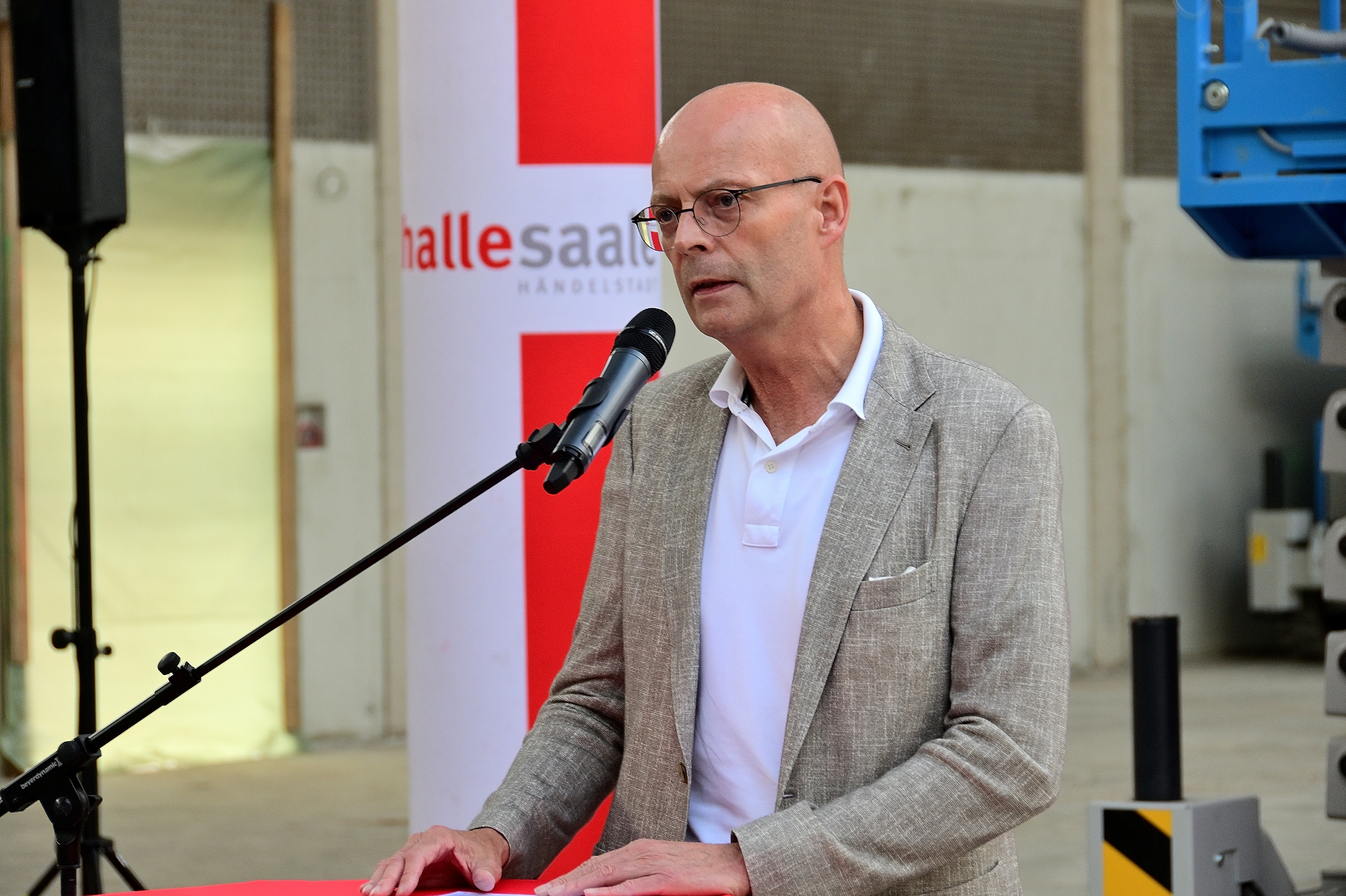 In seiner Rede informierte der Oberbürgermeister der Stadt Halle (Saale) über aktuelle und in nächster Zeit zu realisierende Bauvorhaben in der Stadt und hob hervor, dass in den letzten Jahren viel erreicht wurde und „Halle gewappnet ist für weitere Aufgaben“.