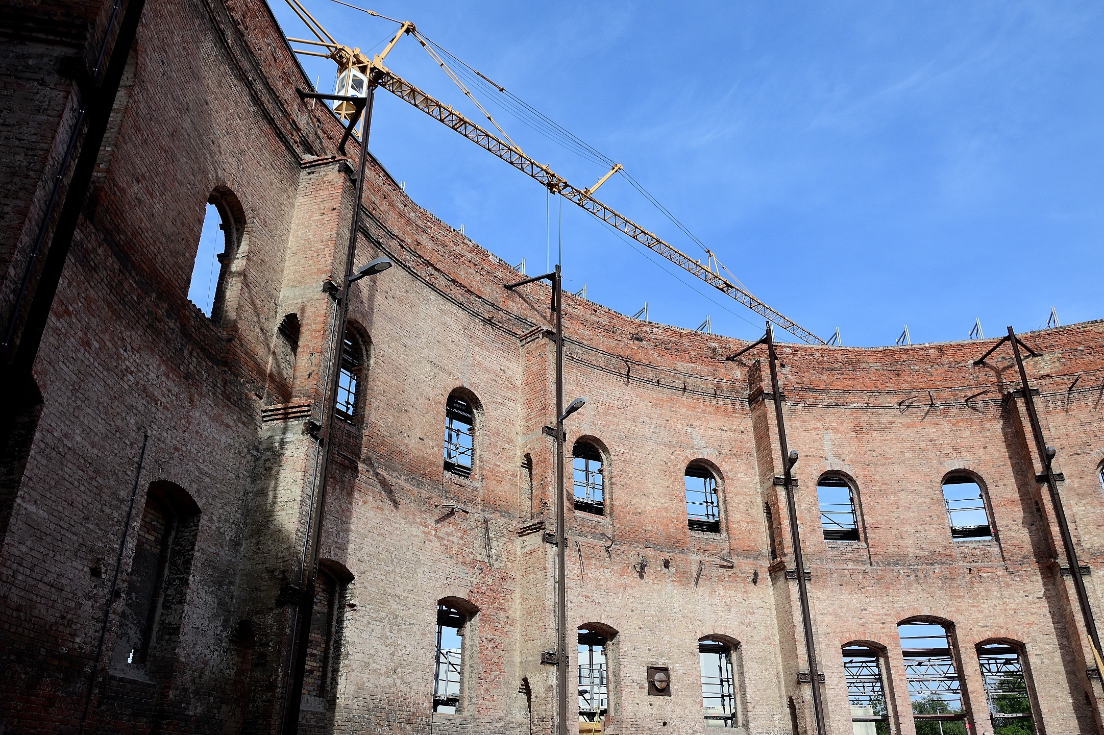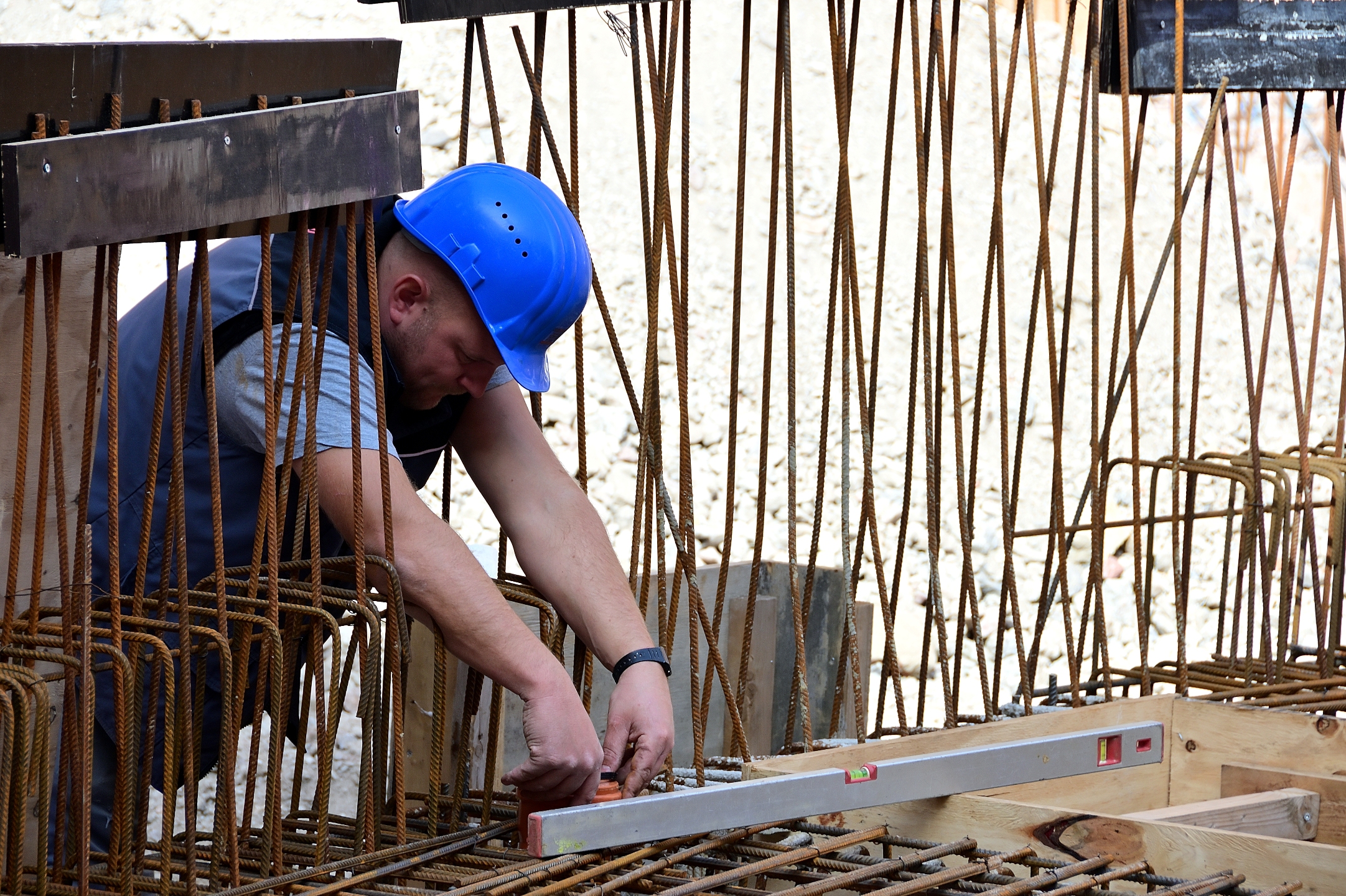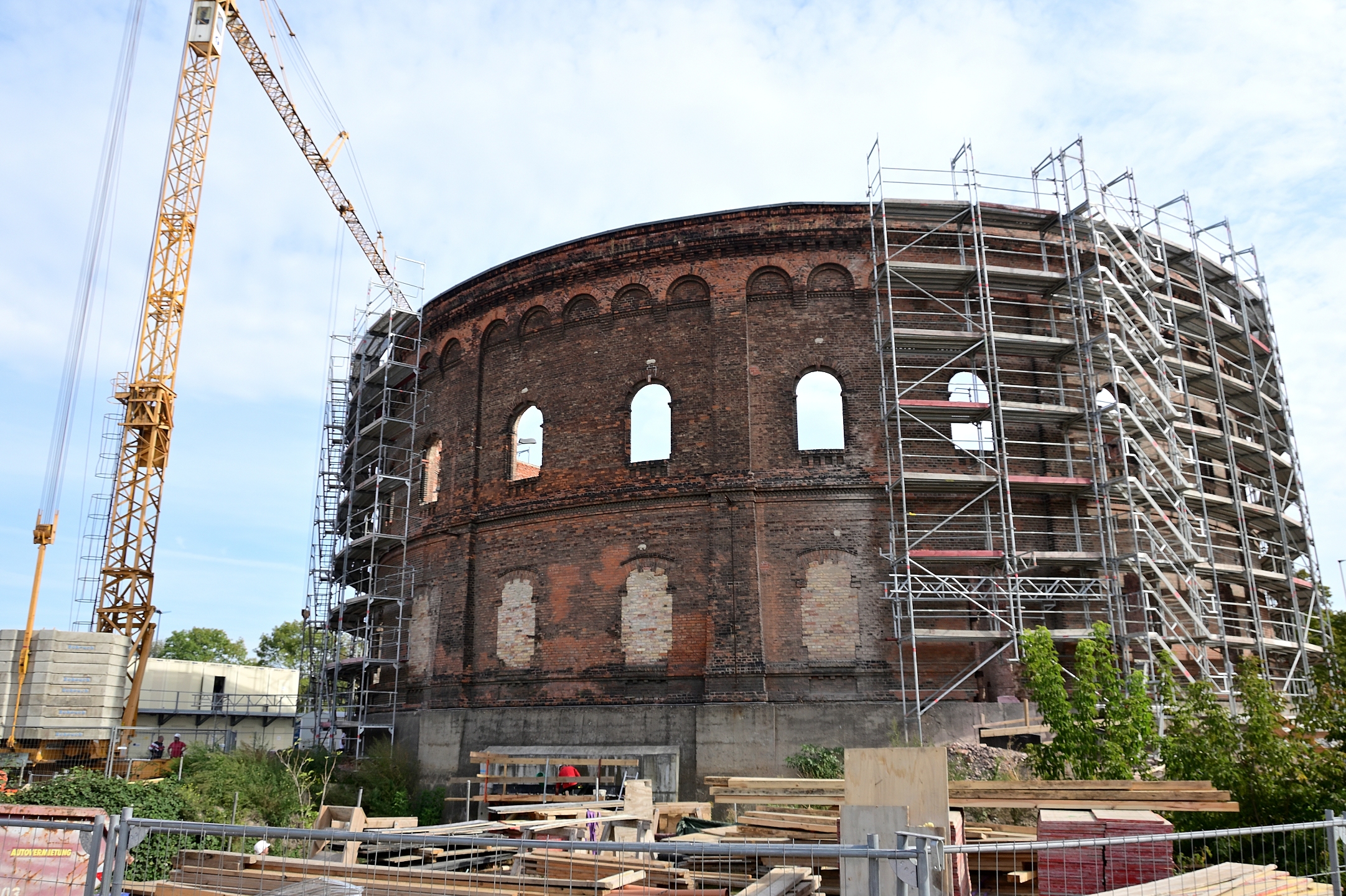 Am 24. September war auf dem benachbarten Bauplatz Richtfest für die Sporthalle. So schnell kann es auf der Baustelle für das neue Planetarium nicht gehen. Von außen nicht sichtbar sind die Vorbereitungen für den Guss einer massiven Betonplatte fast abgeschlossen. Da wird isoliert und abgedichtet, damit alles in einem Arbeitsgang erledigt werden kann. Die Grundplatte wird einiges an Gewicht zu tragen haben, deshalb das dichte ringförmige Eisengeflecht, das in Kooperation mit dem Beton alles zusammenhalten wird. Diese Ebene wird etwas höher liegen als die nächste zu vermutende Hochwassermarke.