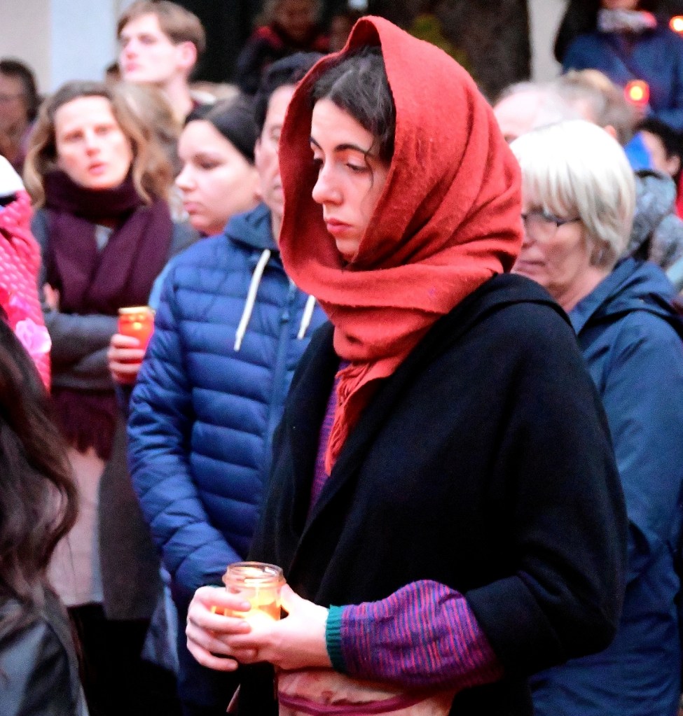 Nach einer sehr ergreifenden Andacht mit Gesang wurde eine Lichterkette bis zum Döner-Laden in der Ludwig-Wucherer-Straße gebildet.