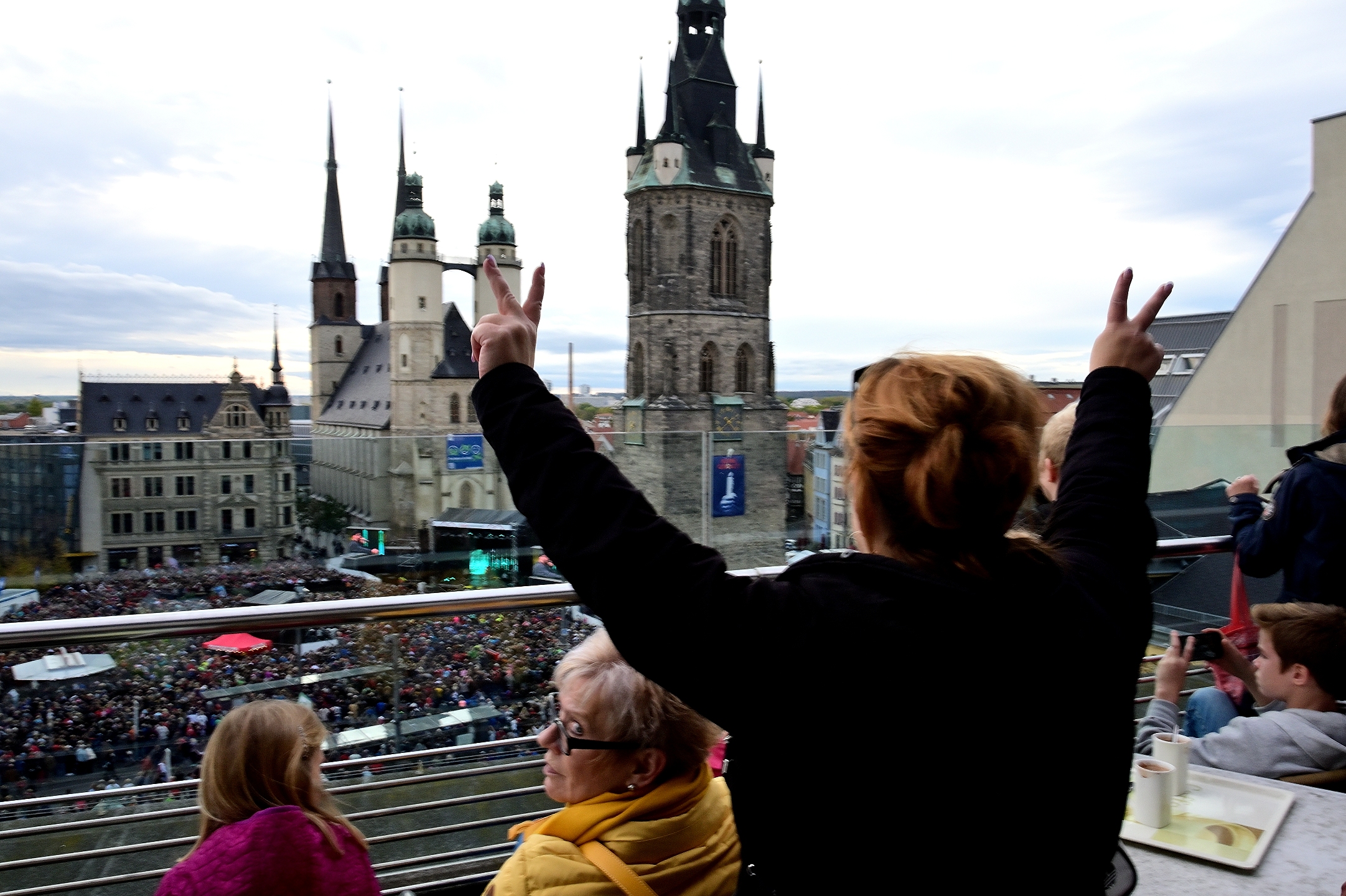 Das vom MDR, der Mitteldeutschen Zeitung, Radio Brocken, 89.0 RTL, Radio Brocken, Radio SAW und Rockland kurzfristig organisierte Solidaritätskonzert auf dem Marktplatz von Halle wurde im Zeichen der Solidarität mit den Anschlagsopfern vom 9. November durchgeführt.