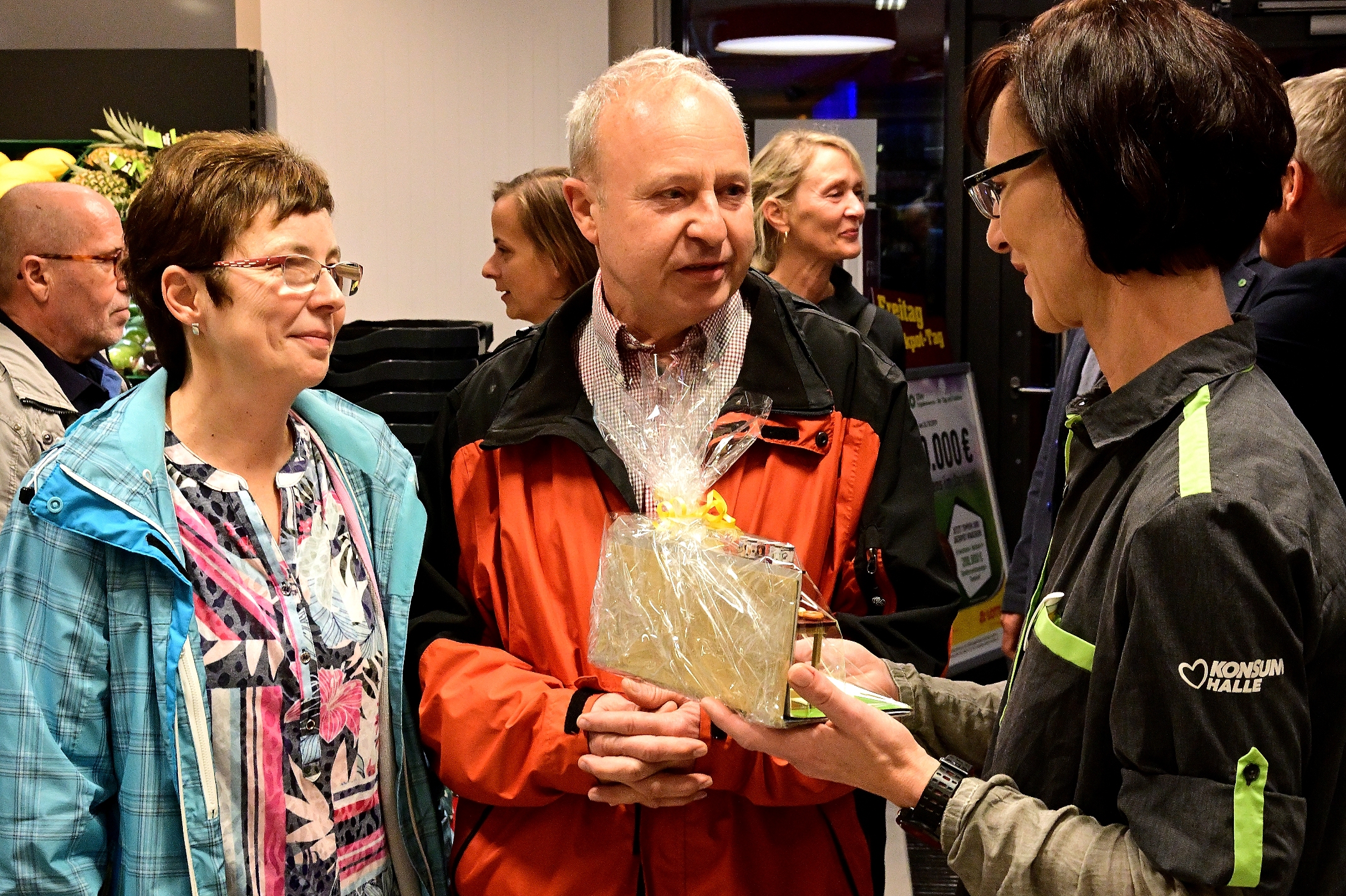 Schon eine halbe Stunde vorher hatten sich interessierte Hallenser eingefunden und 08:04 Uhr hatte die erste Kundin ihren Einkauf erledigt.