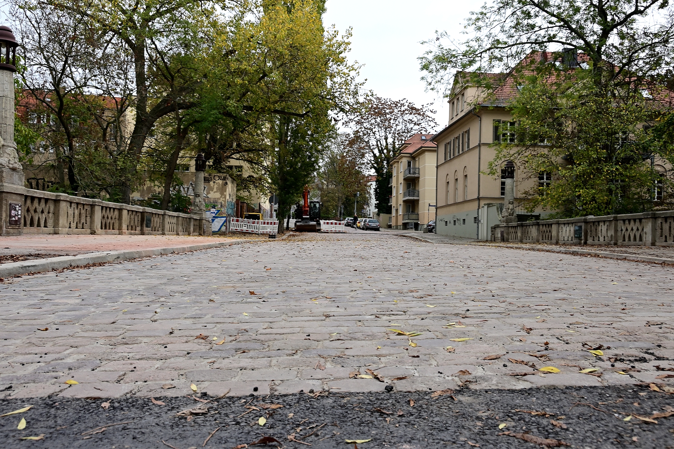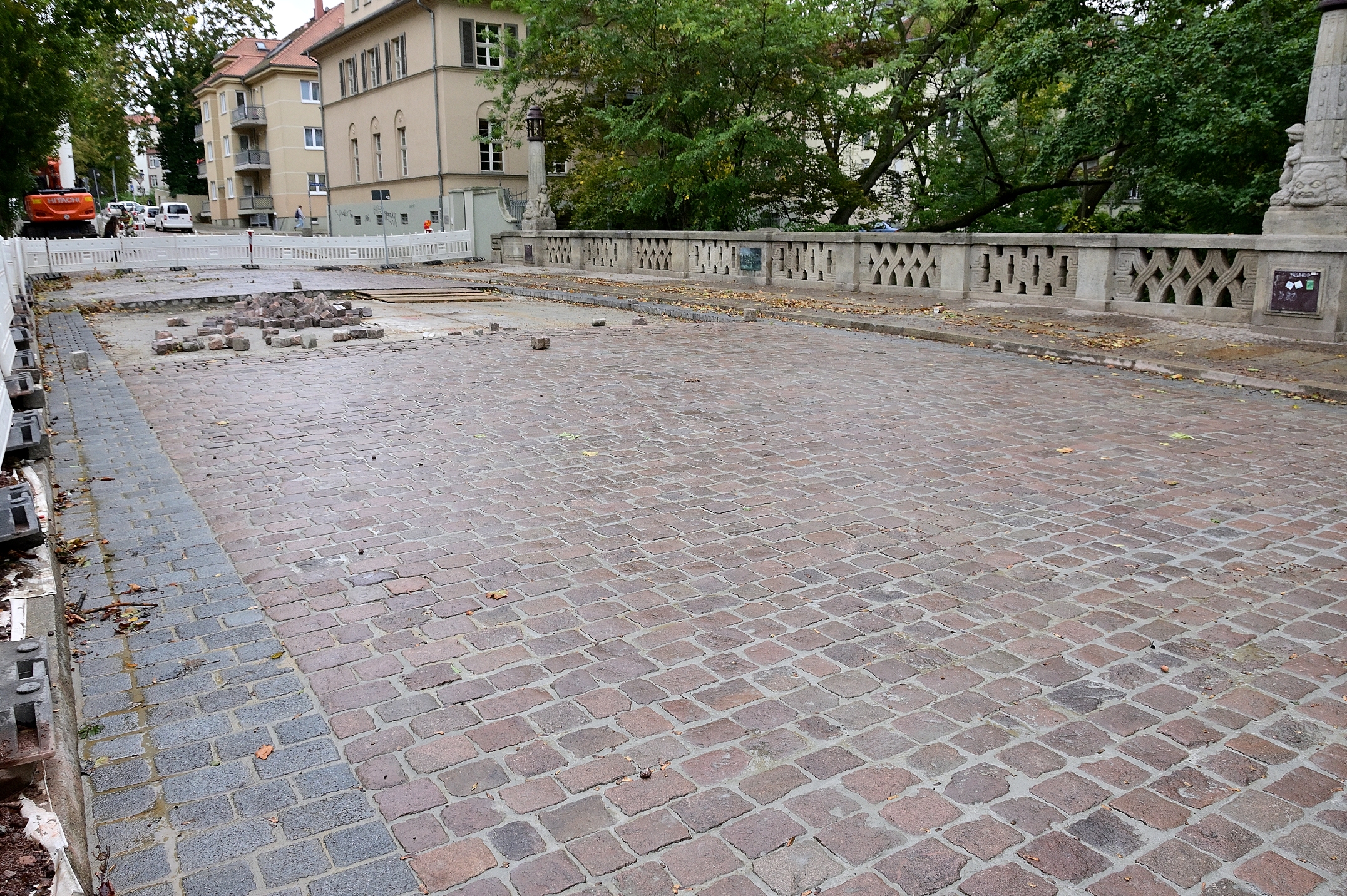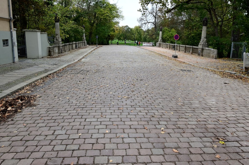 Links und rechts der Fahrbahn wurden die Fußwege neu gestaltet. Die Brücke ist