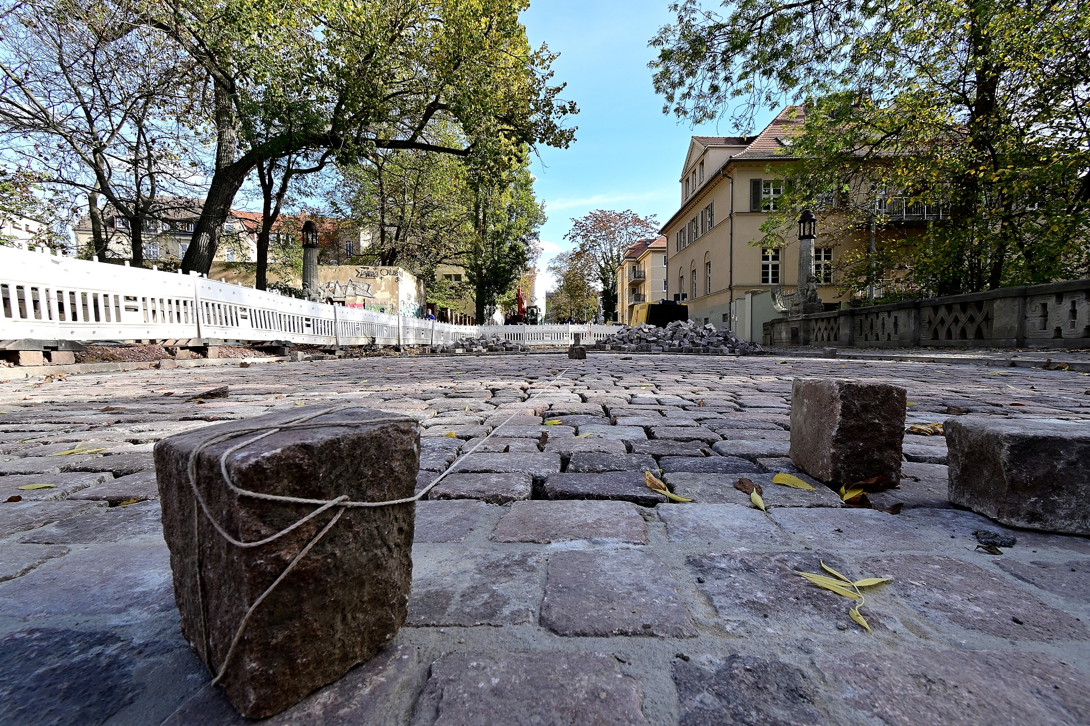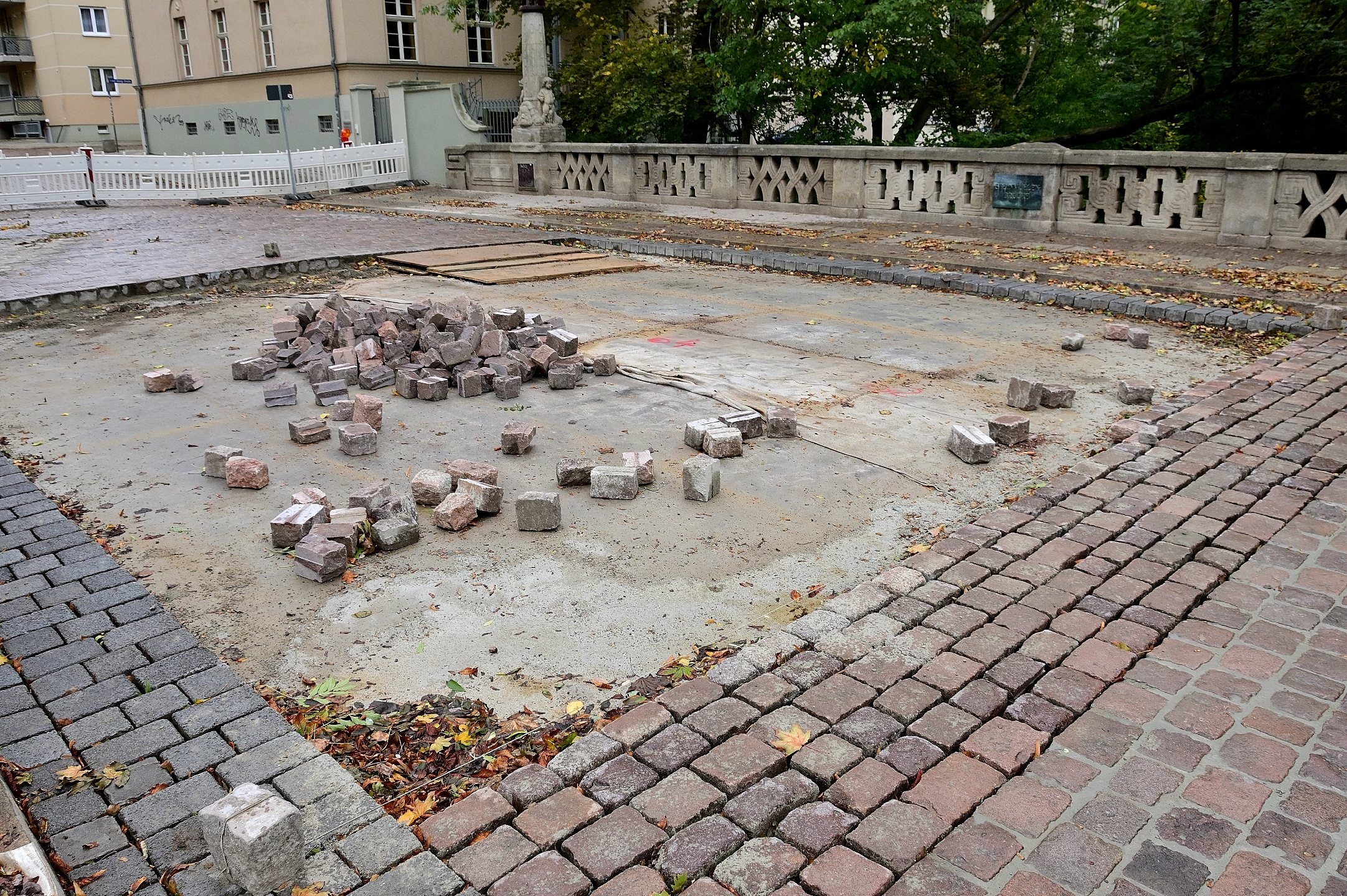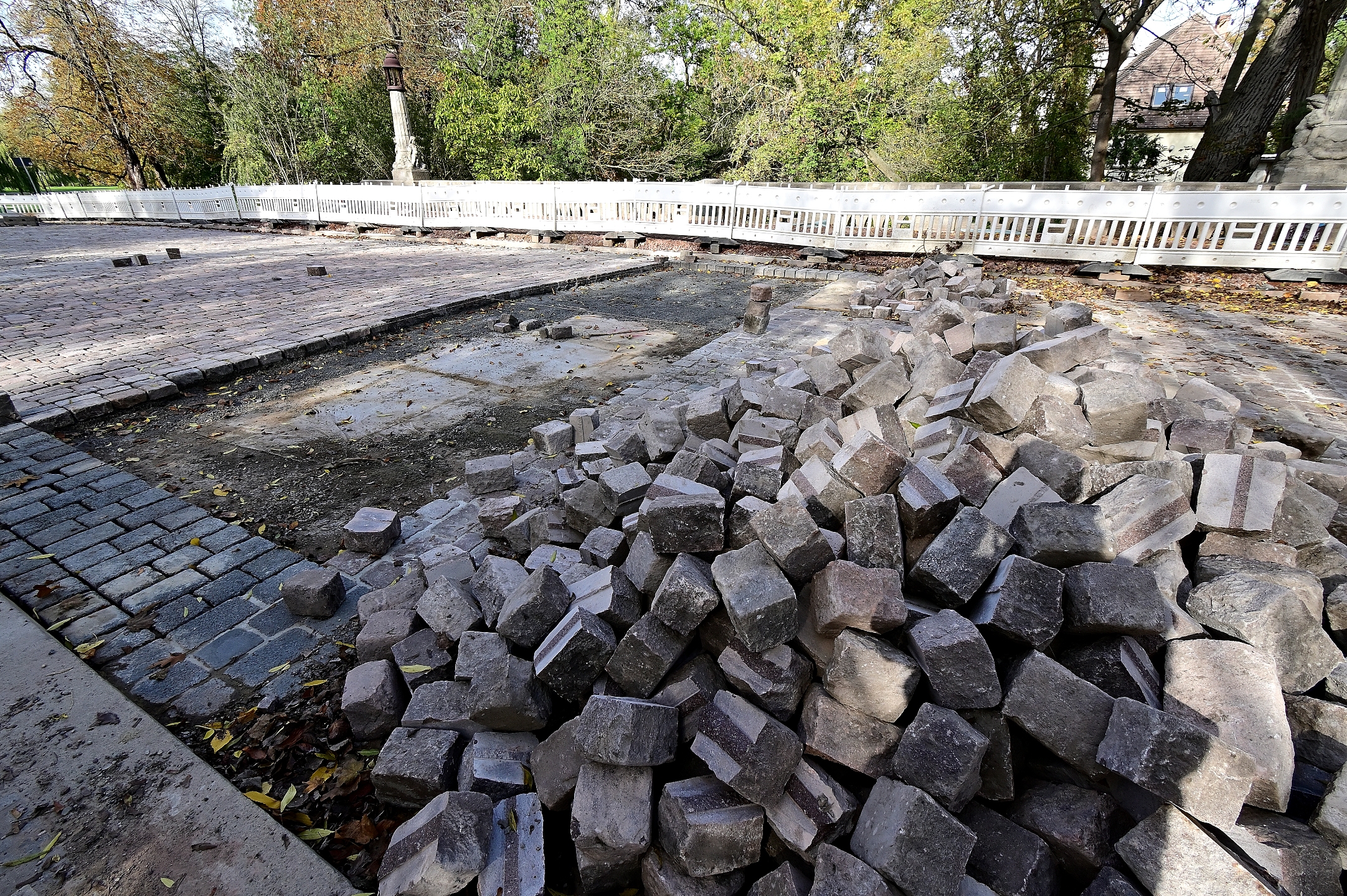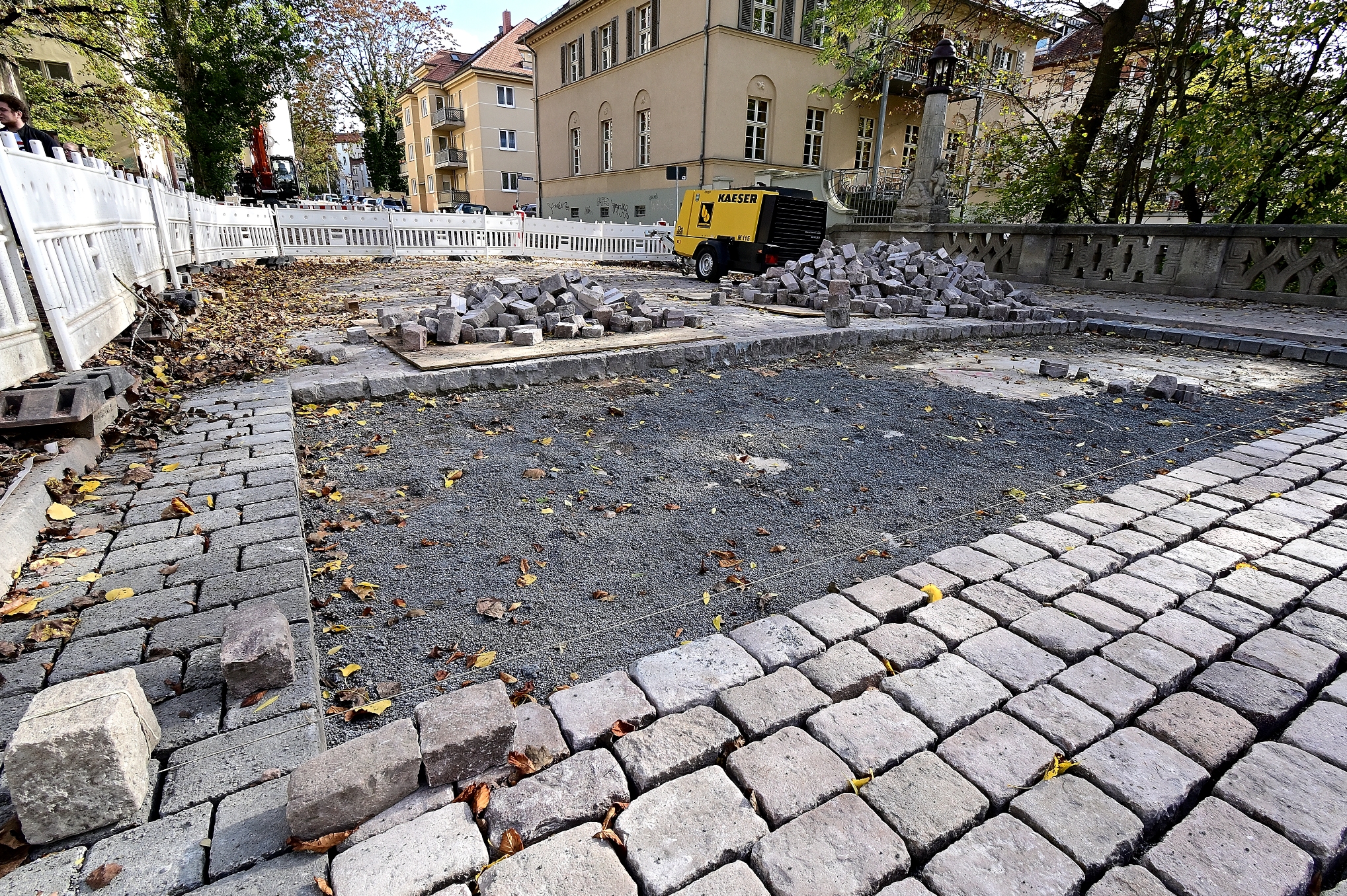 Fahrbahnbelag aus Natursteinen wurde in seinen vorherigen Zustand versetzt.