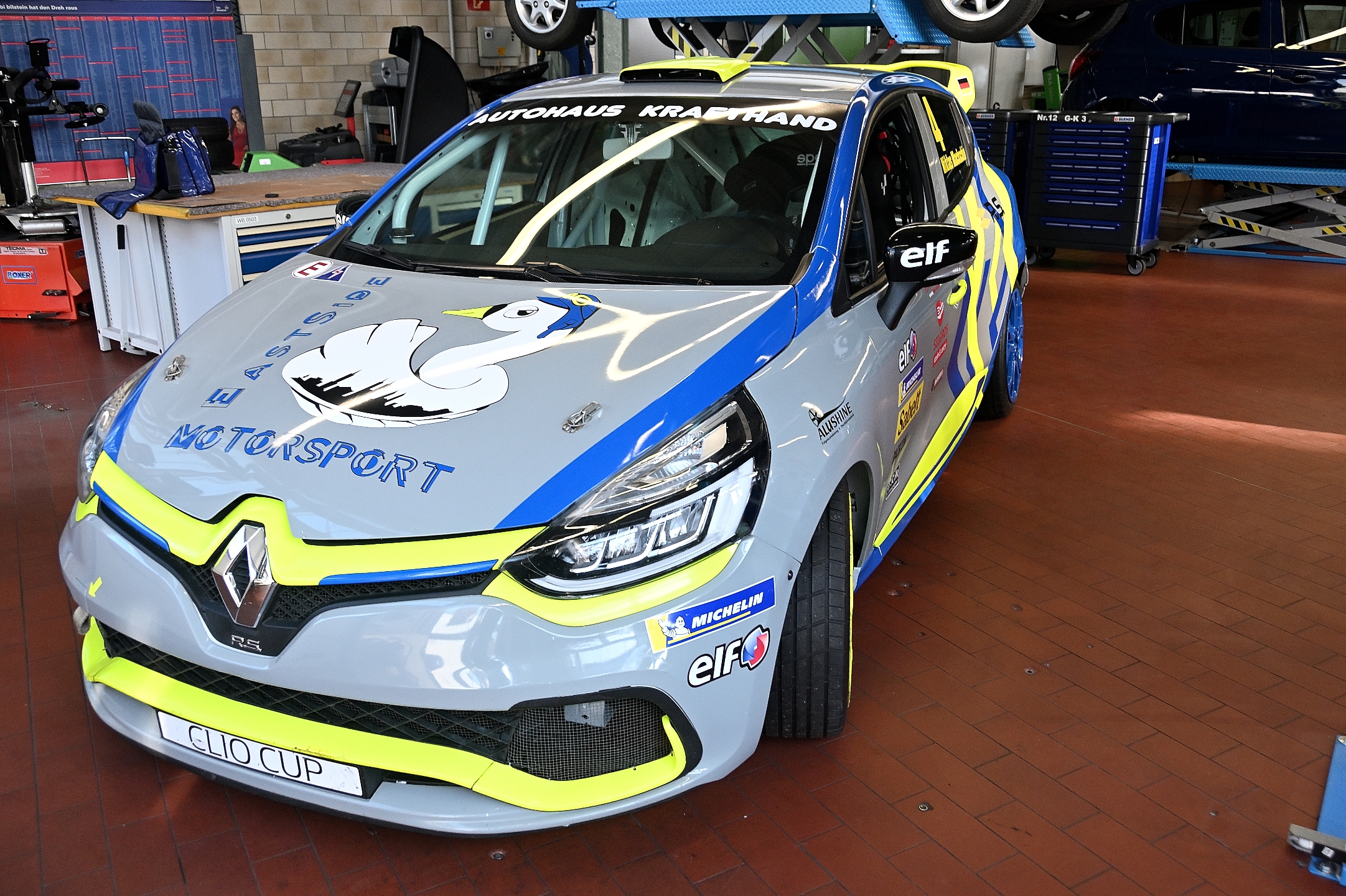 Virginia Möckel und Florian Schön, sie Diplomingenieurin für Kfz. – Technik, er mit eigener Kfz.-Werkstatt in Halle haben ein eigenes Motorsport-Rennteam in Halle gegründet. Unterstützt durch das Bildungs- und Technologiezentrum der Handwerkskammer Halle [BTZ] und durch viele Sponsoren beteiligen sie beide Teamchefs mit Rennfahrern an nationalen und internationalen Motorsportrennen. Dieser Sport hat seinen Preis, für eine Rennsaison benötigt man schon mal 100.000 Euro. Die Fahrzeuge sind keine „normalen“ Pkw, sie sind technisch ausgefeilt und eigens für den Rennsport vorbereitet. An den Fahrzeugen wird alles „störende und überflüssige“ entfernt. Da gibt es keinen Beifahrer- oder Rücksitze bzw. Innenauskleidungen. Dafür ist ein Feuerlöscher griffbereit im Innenraum installiert oder Überrollbügel und andere Einrichtungen, die für die Sicherheit des Rennwagens notwendig bzw. vorgeschrieben sind. Und das es nicht immer ein Fahrzeug ein großen Fahrzeugmarke sein, kann man auf den Bildern erkennen, denn hier wird ein Renault für den Clio Cup vorbereitet.