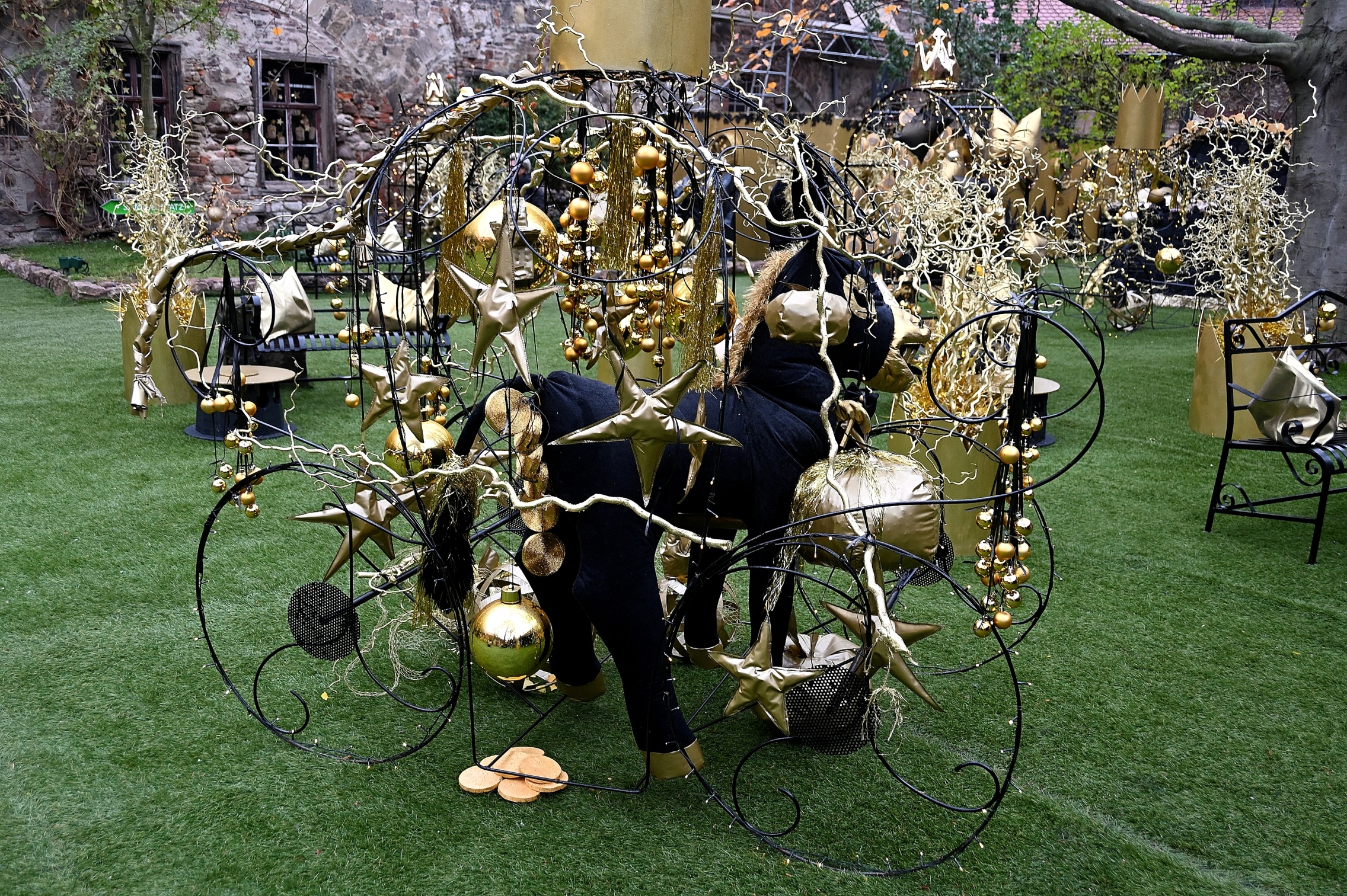 Kutschen, Weihnachtsdekoration, Märchenfiguren und vieles mehr sind in der diesjährigen Weihnachtsausstellung in der Neuen Residenz am Domplatz zu sehen. Die „Goldmarie“ muss hier tüchtig mitgewirkt und ihr Füllhorn ausgeschüttet haben, denn alles in Gold eingetaucht. Und unbeabsichtigt sind auch heute einige Selfies entstanden.