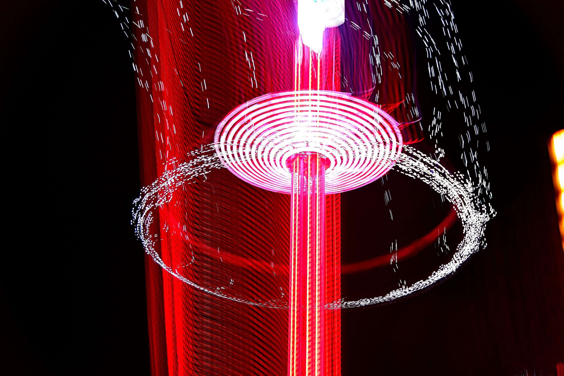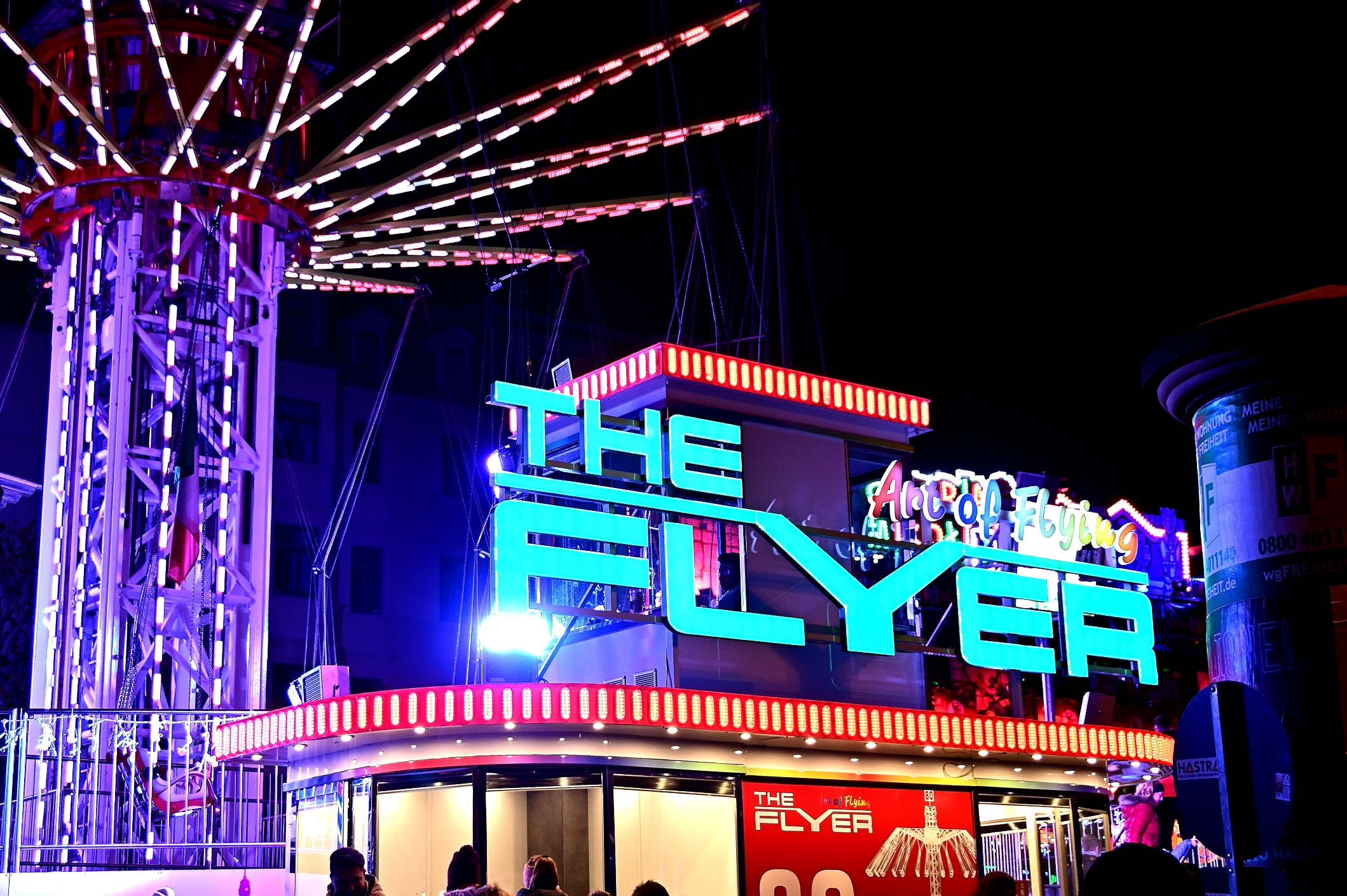Der Blick auf das bunte Treiben von den Hausmannstürmen hat auch eine beruhigende Wirkung, währenddessen die Fahrt mit Kettenkarussell nichts für schwache Nerven ist. Das hört man bis weit in die Stadt hinein und die laute Musik trägt auch nicht zur Beruhigung bei. Fast 55.000 farblich unterschiedliche LEDs verstärken noch den Druck auf alle Sinnesorgane. Das ist die Fahrt bis auf 80 Meter Höhe hinauf kaum noch spürbar, so ein Fahrgast kurz vor dem Einsteigen ins Karussell. Dennoch gibt es keine leeren Plätze und die Warteschlange nimmt nicht ab, die Betreiber aus Magdeburg wird es freuen. Von unten betrachtet ist es genauso spektakulär, da bietet sich das Ausprobieren mit den Einstellungen an der Kamera nahezu von selbst an.