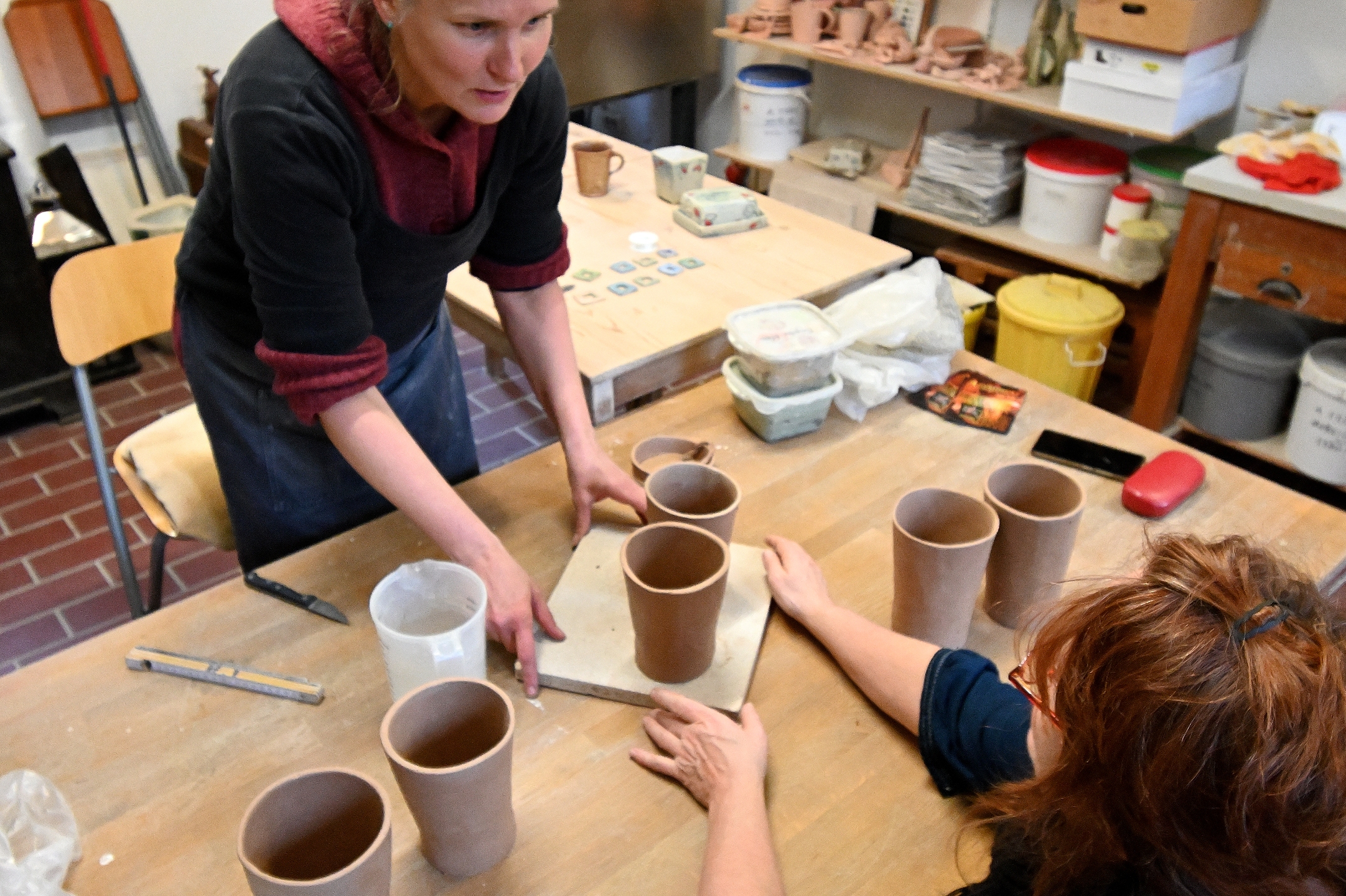 Für viele Kunsthandwerker, Textilgestalter, Spielzeugbauer und Kreative aus vielen anderen Bereichen ist der jährliche Adventsmarkt im Innenhof der Geiststraße 26 ein guter Anlass ihre Produkte zu präsentieren und natürlich auch zum Kauf anzubieten. Der im Stil der Gründerzeit anmutende Innenhof mit seinen liebevoll restaurierten Fachwerkbauten bietet auch außerhalb der Adventszeit Kunsthandwerkern ein ideales Domizil für ihr Schaffen. Unter anderem hat dort die Keramikerin Alrun Reinhardt seit 2004 ihre kleine verträumte Keramikwerkstatt. Dort arbeitet sie täglich an verschiedenen Gebrauchsgegenständen aus Keramik, die natürlich auch dort im eigenen Ofen im 2. Brand bei bis zu 1.170 Grad mit bleifreier Glasur gebrannt werden. Präsentiert und verkauft wird die Keramik in Galerien außerhalb von Halle in verschiedenen Städten und in ihrer Werkstatt. Für Interessierte bietet sie außerdem Kurse in allen Altersklassen an.