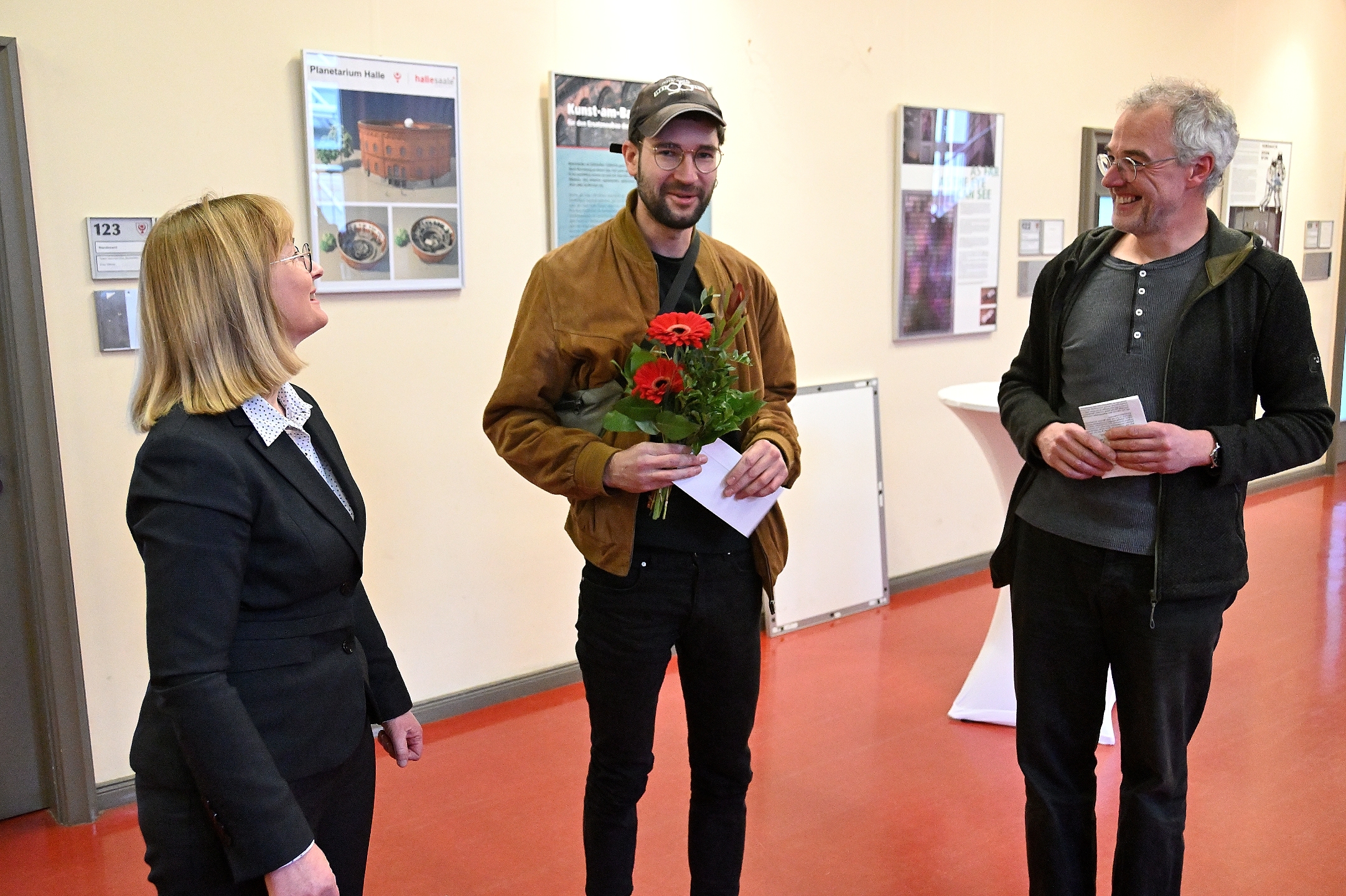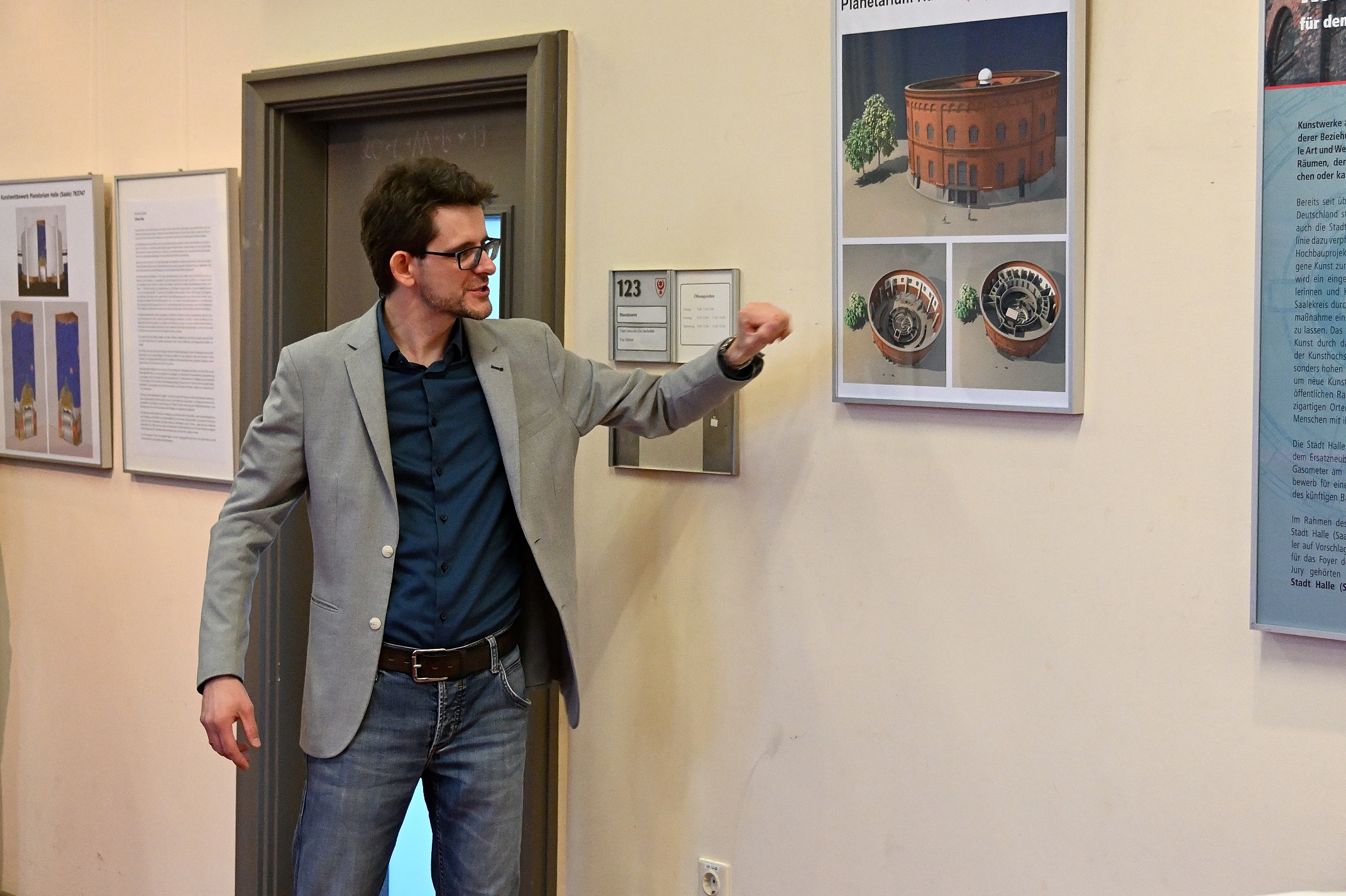 Als Student der Kunsthochschule in Halle (Saale) neben so renommierten Künstlern zu bestehen, ist schon bemerkenswert. Und doch, Etienne Dietzel hat den 1. Preis mit seinem Entwurf für das Planetarium auf dem Holzplatz gewonnen, neben Marc Fromm 2. Preis und Moritz Götze 3. Preis.