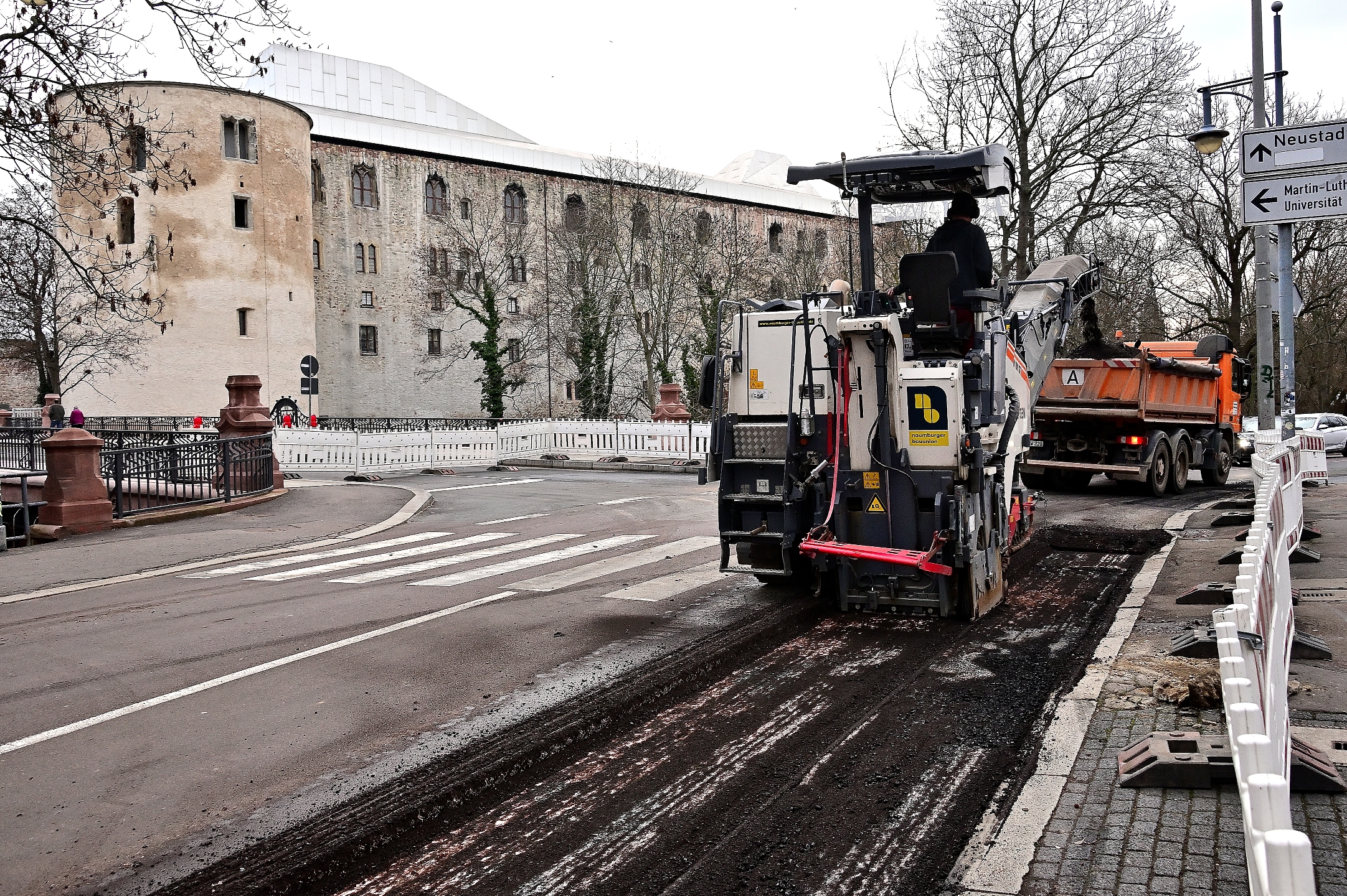 Das Bauvorhaben soll in drei Bauabschnitten realisiert werden. Erster Teil ist der Bereich zwischen der Pfälzer Brücke bis zur Burgbrücke. Gestern wurde dazu die Sperrung auf einer der wichtigsten Straßen im Altstadtring vorgenommen. Tausende Fahrzeuge, die täglich die Straße durchfahren, müssen nunmehr in den nächsten Monaten eine Umleitung über die Straße Neuwerk – Am Kirchtor – Große Wallstraße – Moritzburgring und Universitätsring nehmen. Während der Bauarbeiten werden die Einschränkungen für die Anwohner und dort ansässigen Gewerbetreibenden so gering wie möglich gehalten.