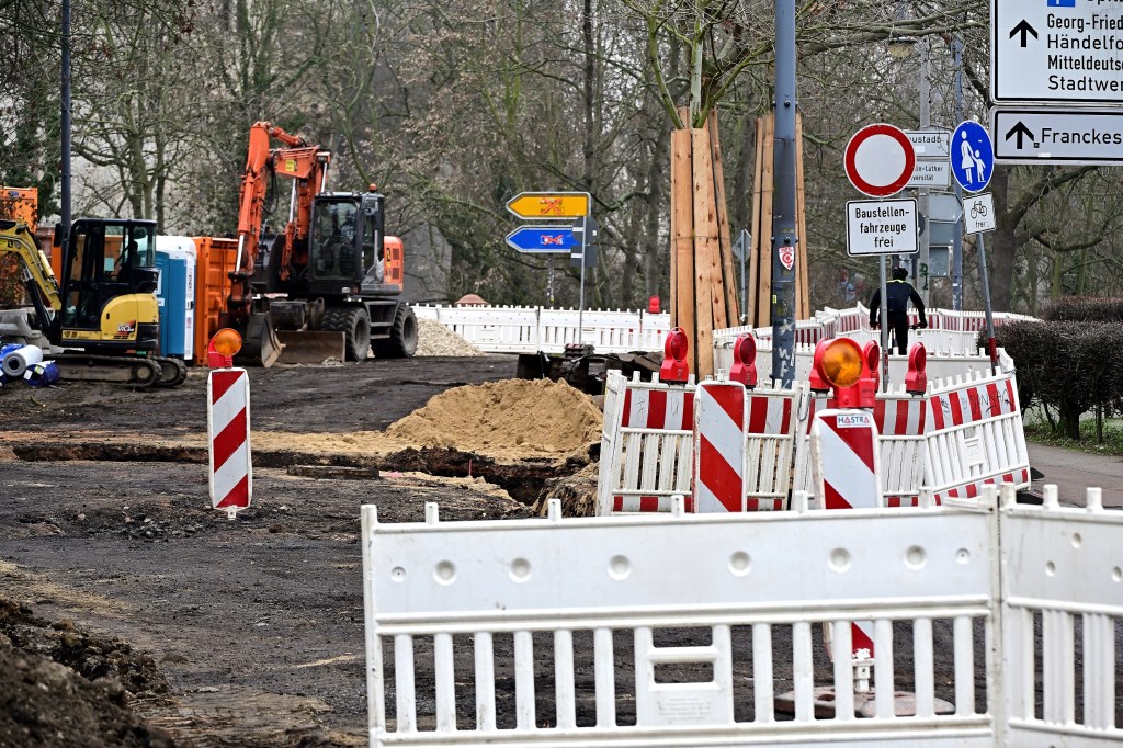 Nach dem Abtragen der alten Fahrbahnoberfläche geht es nun zwischen der Pfälzer Brücke und der Burgbrücke in den „Untergrund“. Ausgeführt werden die Bauarbeiten von der Naumburger Bauunion, die in diesem Bereich über große Erfahrungen verfügen und in der Stadt Halle und in der Region schon mehrere Bauprojekte umgesetzt haben. Alte Baustoffe werden wieder verwertet unter anderem die Bordsteinkanten, die aus diesem Grund nummeriert werden. Und mittlerweile hat sich der Verkehr auf die Umleitungen eingestellt.