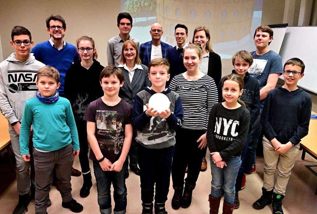 Derzeit baut die Stadt Halle (Saale) ein neues Planetarium auf dem Holzplatz. Zur Unterstützung des Planetarium-Teams hat der Planetariums-Leiter Dirk Schlesier am 30. Januar 2020 zum Kennenlernen Kinder und Jugendliche, die sogenannten „YoungStars“ in das Stadtarchiv am Marktplatz eingeladen. Während Dirk Schlesier noch einmal seinen Vortrag zum Bauvorhaben Planetarium durchgeht, treffen schon die ersten Kinder und Jugendlichen im Stadtarchiv ein. Flankiert von kompetenter Unterstützung durch Lena, Enrico und Tom, alle drei im aktiven Studium Lehramt bzw. Physik, die sich als Unterstützer einbringen wollen, sollen sich die „YoungStars“ künftig für das Planetarium engagieren und Kinder bzw. Jugendliche zu den Angeboten des Planetariums beraten, aber auch selbst Programme gestalten. Ein zum Thema passendes Accessoir, einen kleinen leuchtenden Mond, haben sie schon einmal mitgebracht. Begrüßt wurden alle vom Oberbürgermeister der Stadt Halle, Dr. Bernd Wiegand und der Beigeordneten für Kultur und Sport, Dr. Judith Marquardt.