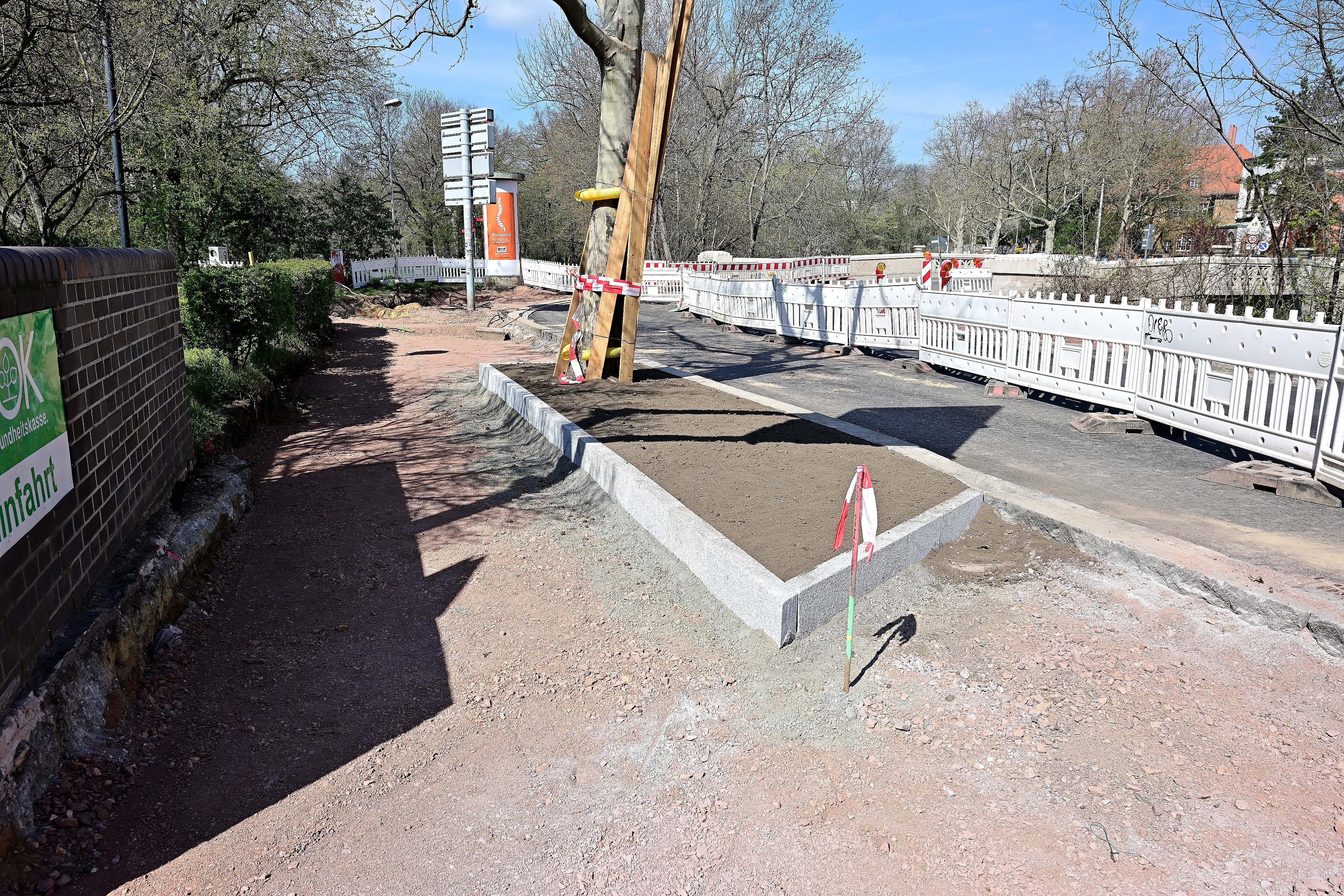 Es ist alles noch im Plan. Während der erste Bauabschnitt kurz vor der Fertigstellung ist, wurde bereits Anfang März der zweite Teil des Bauvorhabens in Angriff genommen. Zwischen der Burgbrücke und den Mühlpfortenbrücke ist der alte Straßenbelag entfernt und die vorbereitenden Arbeiten für die Erneuerung der Fahrbahn haben begonnen. Zwischen Pfälzer Brücke und Burgbrücke werden gerade die Fußwege, Geländer und Grünstreifen gestaltet. Danach wird der eigentliche Belag aus Bitumen auf der Fahrbahn aufgebracht.