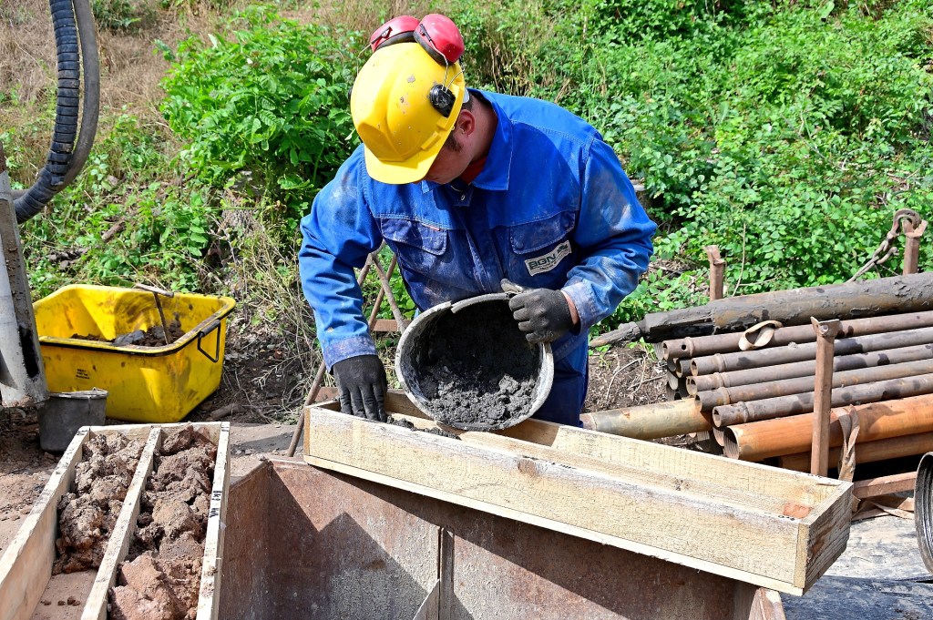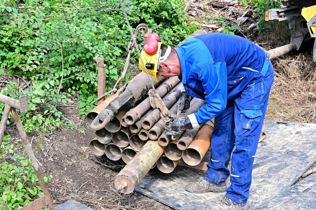 Am Gimritzer Damm kommen die Arbeiten langsam in Fahrt. Seit gestern werden Erkundungsbohrungen entlang des 1,2 Kilometer langen zukünftigen neuen Damms durchgeführt. Ausgeführt werden die Arbeiten durch die Firma Bohr- und Geotechnik Nowak GmbH aus Kelbra, OT Tilleda. Dazu sind mehrere Bohrungen in einer Tiefe von jeweils ca. 13 Metern angelegt. Die dabei erhaltenen Bohrkerne werden dem Planungsteam zur Auswertung des Baugrundes vorgelegt. Das ist schon insofern notwendig, da der Untergrund für das zu schaffende Bauwerk, eine Stahlbetonwand mit einer Pfahlgründung bis zu 8 Meter tief im Boden verbaut wird. Oberhalb des Dammes wird die Wand teilweise bis zu 1,2 Meter zu sehen sein.