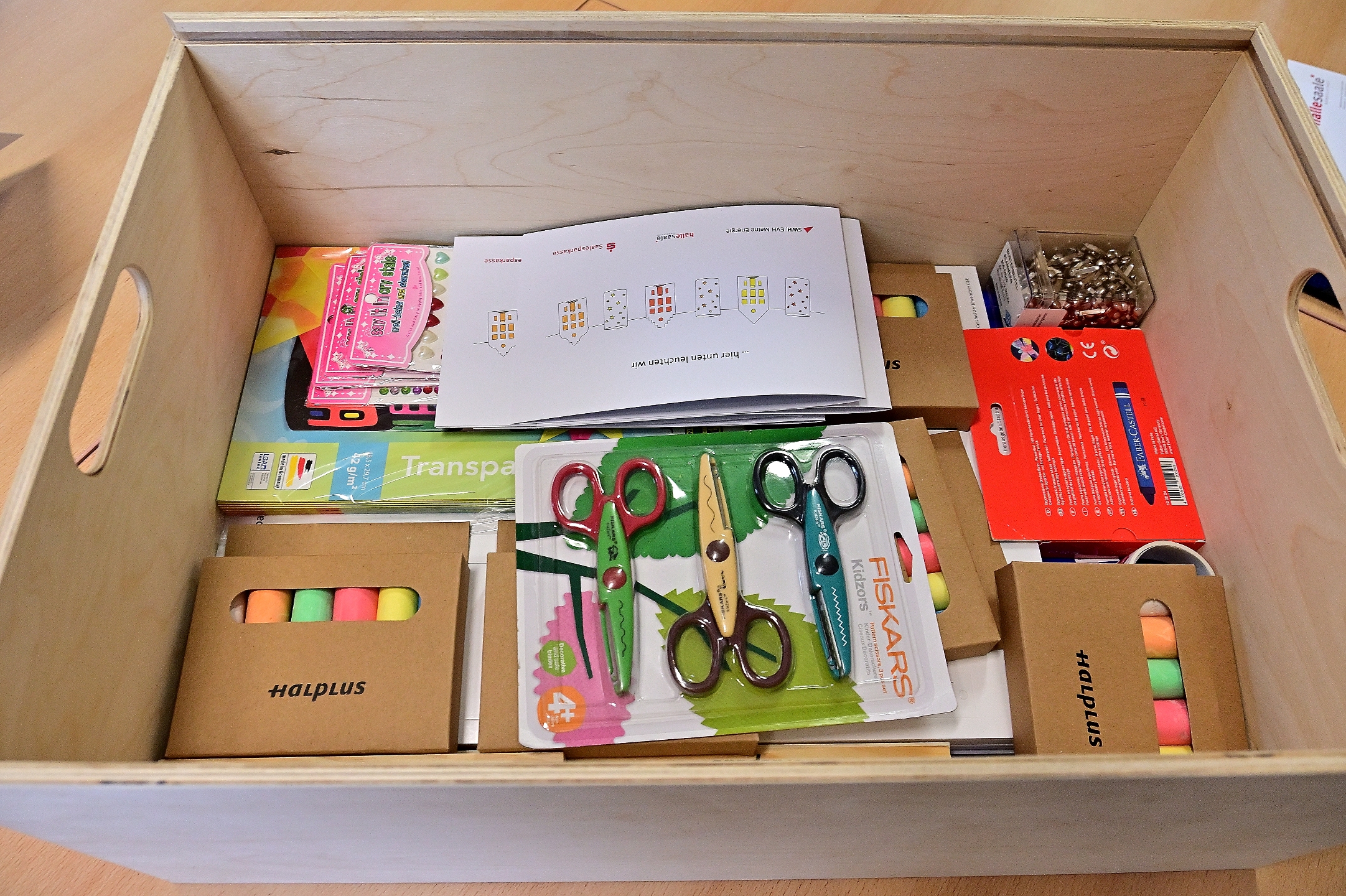 Neben selbst gebastelten Laternen können auch vorgefertigte Bastelbögen beim Stadtmarketing Halle (Saale), Halles Tourist-Information käuflich erworben werden. Die 100 Bastelkisten werden ab dem 15. Juli an die Halleschen Kindergärten verteilt.