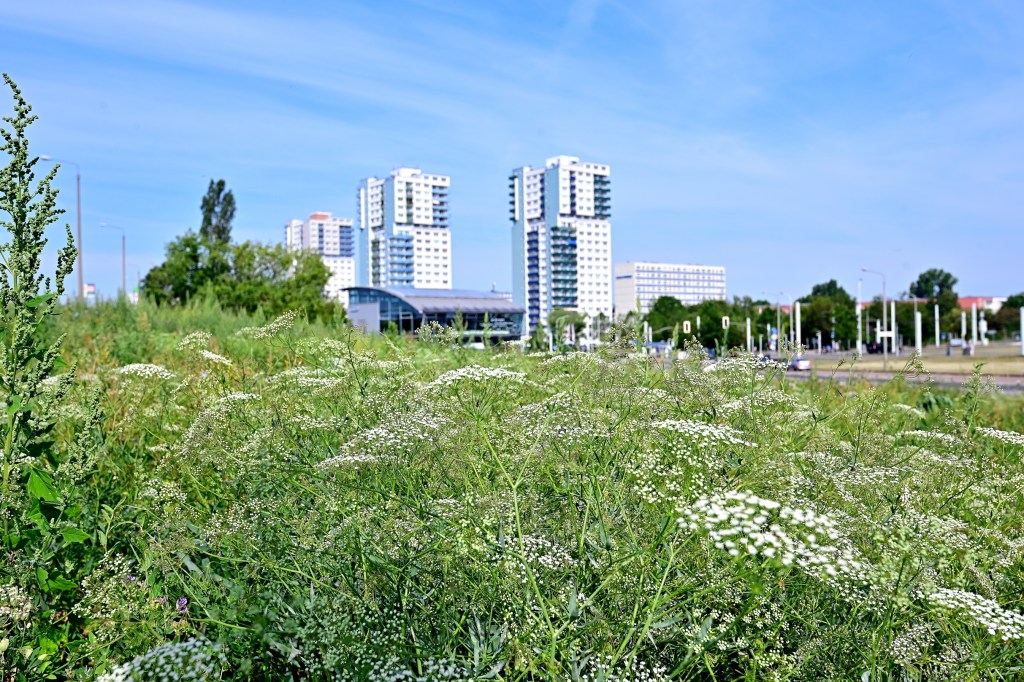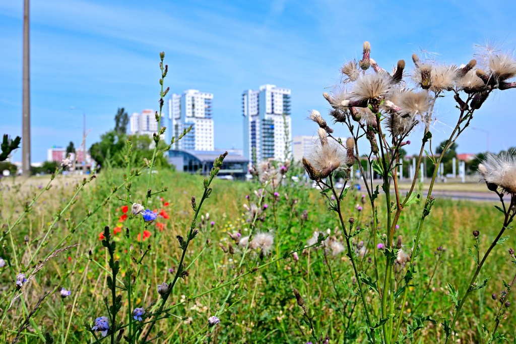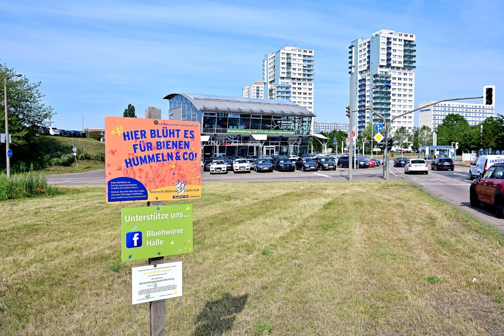 Grashüpfer, Hummel und Co. Es regelt sich eigentlich alles von selbst, wenn man die Natur sich selbst überlässt oder den nötigen Spielraum gibt. Auf dem kleinen, sich weitgehend selbst überlassenen Grünstreifen zwischen der Rennbahn und dem Gimritzer Damm wimmelt es nur so von Insekten und Kleingetier, die sich hörbar dort wohlfühlen. Wenn gerade mal kein Auto vorbeikommt hört man es laut zirpen und summen und unzählige Insekten schwirren durcheinander. Das ist in der Stadt nicht nur auf der „Blühwiese“ zu sehen. Auch auf der Peißnitz wird nicht mehr alles bis auf den letzten Halm herunter gemäht. Große Teile der Rasenflächen bieten Insekten und anderen Kleintieren den nötigen Schutzraum und Übergänge ins Unterholz oder bewaldete Flächen.