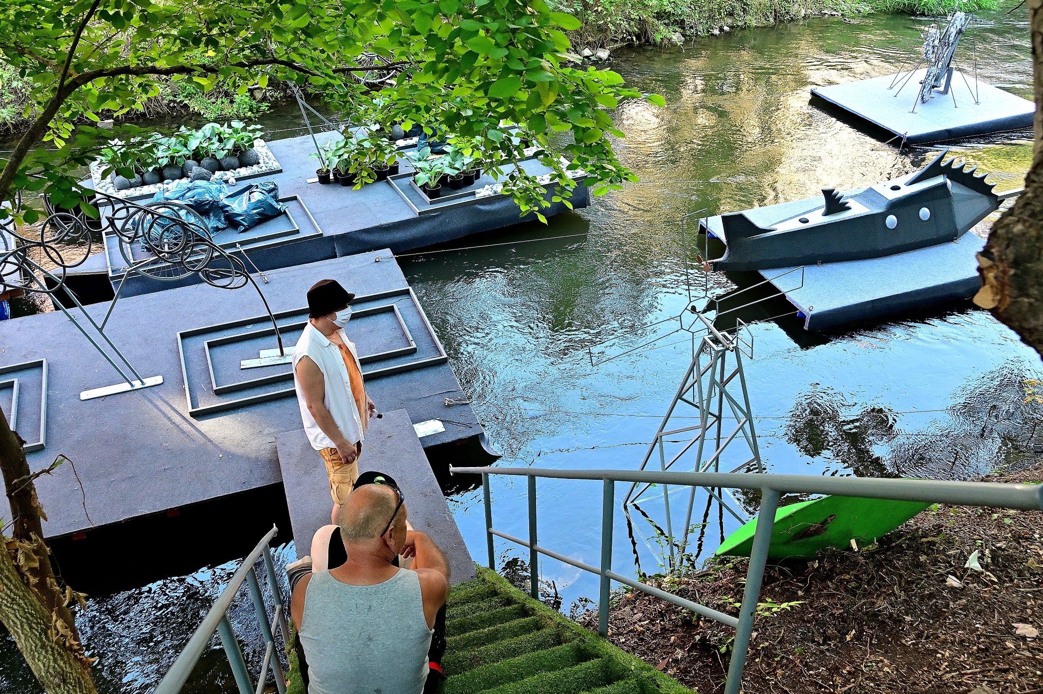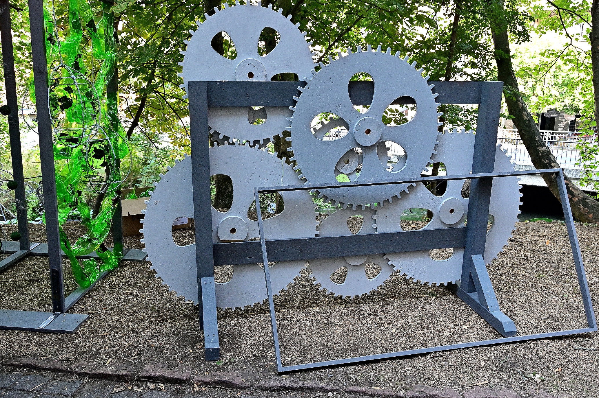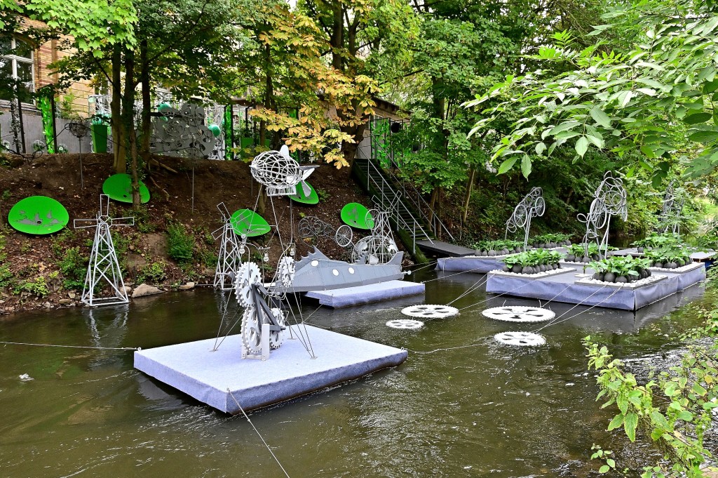 Seit heute ist eine neue Installation auf der Saale am Mühlweg zu sehen. Unter dem Thema, „Technik und Fantasien“ wurden entsprechende Exponate auf den künstlichen Inseln installiert. Darunter Zahnräder, Ballons, Fluggeräte, Windräder, Grünpflanzen und die „Nautilus“ hat auch ihre Fahrt durch die Ozeane unterbrochen und auf der Saale festgemacht.