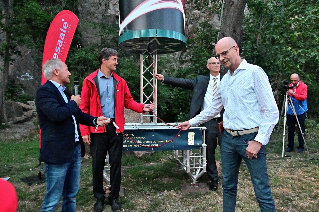 Im Beisein von Oberbürgermeister Dr. Bernd Wiegand, dem Vorstandvorsitzenden der Saalesparkasse Halle, Dr. Jürgen Fox, dem Vorsitzenden der Geschäftsführung Stadtwerke Halle (Saale) GmbH, Matthias Lux und dem Geschäftsführer der Stadtmarketing Halle (Saale) GmbH, Mark Lange und vieler Gäste, wurde pünktlich 20:00 Uhr das Licht angeschaltet.