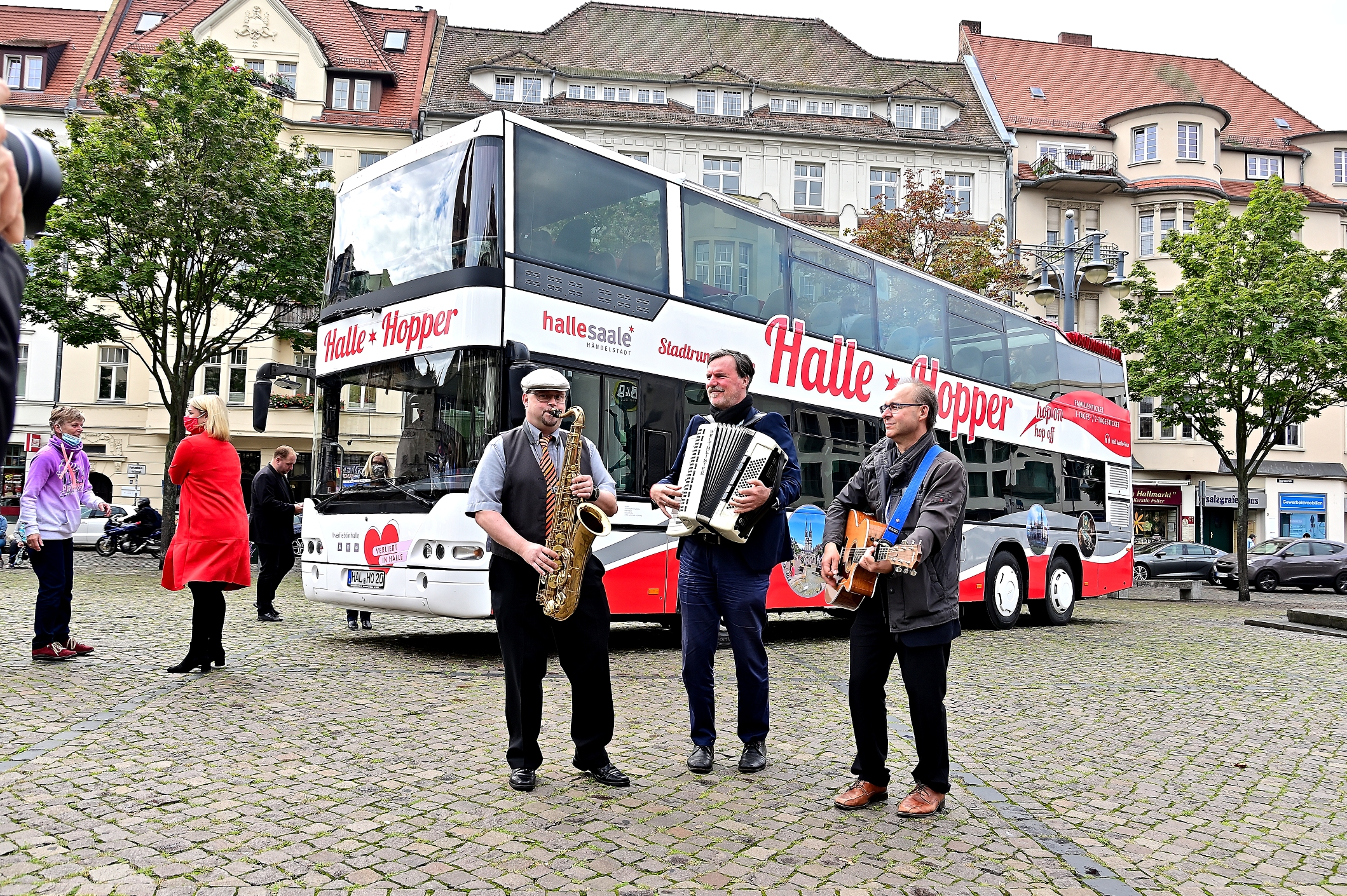 In vielen Städten Deutschlands oder in Europa gibt es sie schon, Doppeldeckerbusse, mit offenem Oberdeck. In Lissabon gibt es mehrere davon, die in zwei Routen, der „Red Line“ und Blue Line“, für touristische Erkundungen zur Verfügung stehen. Jetzt soll auch die Stadt Halle (Saale) ihre eigene Buslinie erhalten, so Mark Lange, der Geschäftsführer der Stadtmarketing GmbH Halle (Saale). Halle als Großstadt mit seinen Sehenswürdigkeiten hat allen Grund das Angebot für Besucher zu erweitern, zumal die „Hallorenschunkel“, die bislang in der Stadt unterwegs war, ist von den Hallenserinnen und Hallensern sowie Besuchern überwiegend gut angenommen worden. Gleichwohl ist die Platzkapazität der Schunkel begrenzt und es gab auch Sicherheitsbedenken, weil man nur auf der linken Seite aussteigen kann. Der neue „Doppeldeckerbus“, der eigens für die touristischen Fahrten in der Stadt mit einem offenen Oberdeck versehen wurde, bietet mehr Komfort und bessere technische Ausstattung. Es können 90 Fahrgäste im Unter- und Oberdeck gleichzeitig aufgenommen werden, es gibt ein modernes Audiosystem mit vorläufig 2 Sprachen, Deutsch und Englisch und es können 2 Rollstuhlfahrer mitgenommen werden. Das Prinzip „Hop-On und Hop-Off“ bedeutet, dass man während der Tour flexibel an den Haltepunkten Ein- und Aussteigen und die einzelnen Sehenswürdigkeiten länger erkunden kann.