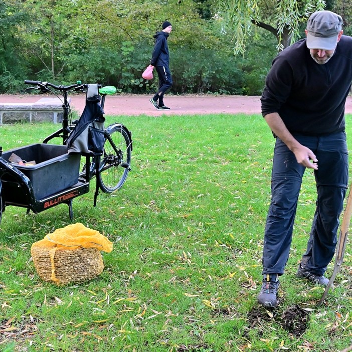 Spaziergänger schauen neugierig und fragen nach. Immerhin kommt man auch so als Kommunalpolitiker gut mit den Menschen ins Gespräch. In den 6 Jahren wurden schon mehr als 300.000 Blumenzwiebeln gepflanzt. Die Zwiebeln bezahlt er übrigens aus seinem privaten Budget. Und vielleicht lassen sich im nächsten Jahr ja auch Naturfreunde finden, die bereit sind Wolfgang Aldag bei seiner Aktion zu unterstützen.