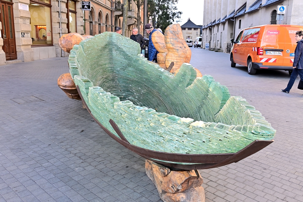 Halle ist mittlerweile der 35. Ort für das 3 Tonnen schwere und 6,5 Meter lange Glasboot, welches nach Abschluss seinen letzten Standort in einer Stadt an der Weißen Elster finden wird. https://www.glasarche-3.de/