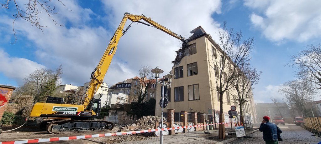 Heute beginnt der Abriss des Eckhauses Peißnitzstraße/Burgstraße. Hier baut Papenburg ein neues Wohn- und Geschäftshaus.