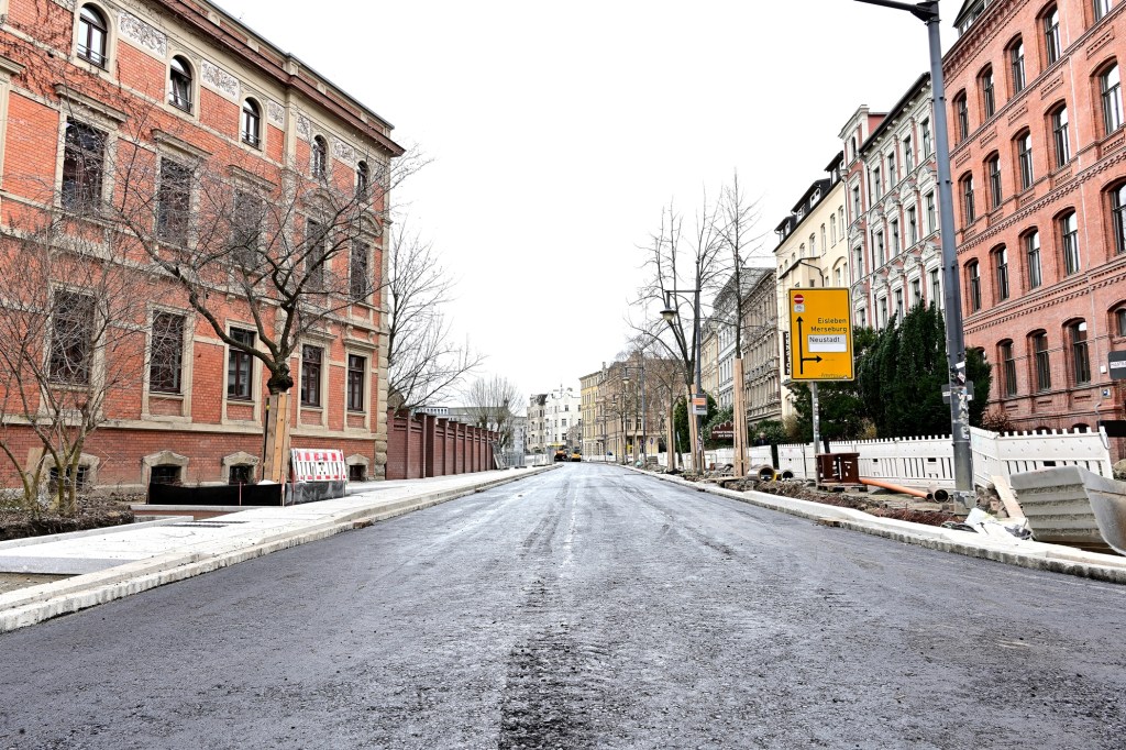 Die Bauarbeiten am Robert-Franz-Ring sind auf der Zielgeraden. Der 3. und letzte Bauabschnitt zwischen Mühlgrabenbrücke und Klausbrücke befindet sich in der Endphase. Der Fußweg auf der Flußseite ist fast fertig, selbst die Außengeländer werden derzeit schon wieder angebracht. Die erste Schicht Bitumen ist aufgebracht und in den den nächsten Tagen wird die Fahrbahndecke fertiggestellt. Die großen Straßenbaumaschinen stehen schon bereit. Durch den Wintereinbruch mit den niedrigen Temperaturen gab es nur kurzzeitige Unterbrechungen der Bautätigkeit.