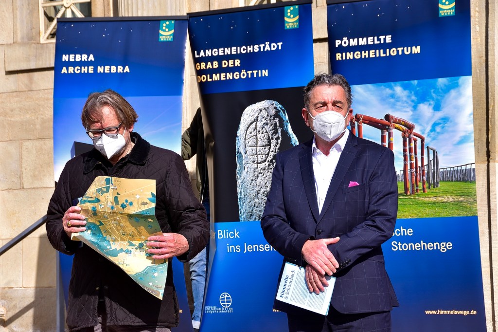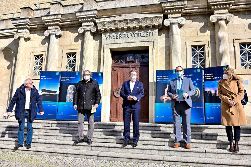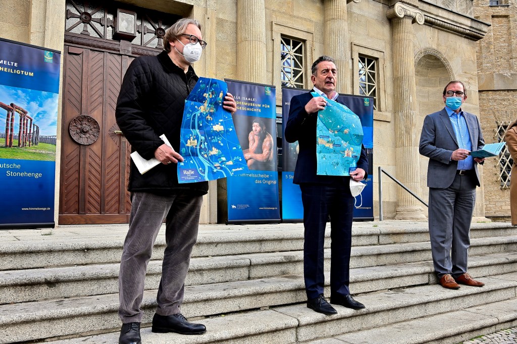 Die Bezeichnung für das Projekt ist vielleicht etwas sperrig, aber die Idee die sich dahinter verbirgt, ist umso interessanter. Im zeitlichen und räumlichen Kontext der weltberühmten Himmelsscheibe von Nebra sollen über den Museumsbesuch hinaus verschiedene archäologische Funde und Befunde in Sachsen-Anhalt miteinander verknüpft werden. Dazu wurden aufwendig gestaltete Entdeckerkarten entwickelt, die heute vor dem Landesmuseum für Denkmalpflege und Archäologie Sachsen-Anhalt in Halle durch den Kulturstaatsminister des Landes Sachsen-Anhalt Dr. Gunnar Schellenberger und den Landesarchäologen Pr. Dr. Harald Meller vorgestellt wurden.