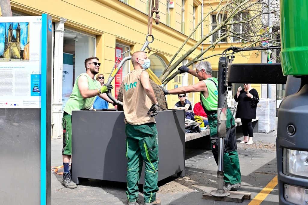 Die Hallenser und die Gäste der Saalestadt wird es freuen, wenn die Attraktivität der großen Fläche im Herzen der Stadt erhöht wird. Ab dem 3. Mai wurden die 21 Pflanzübel aufgestellt und mit verschiedenen Gewächsen bepflanzt. Außerdem werden zu bereits gepflanzten Bäumen weitere Pflanzen und Blumenkübel aufgestellt und entsprechend bepflanzt.