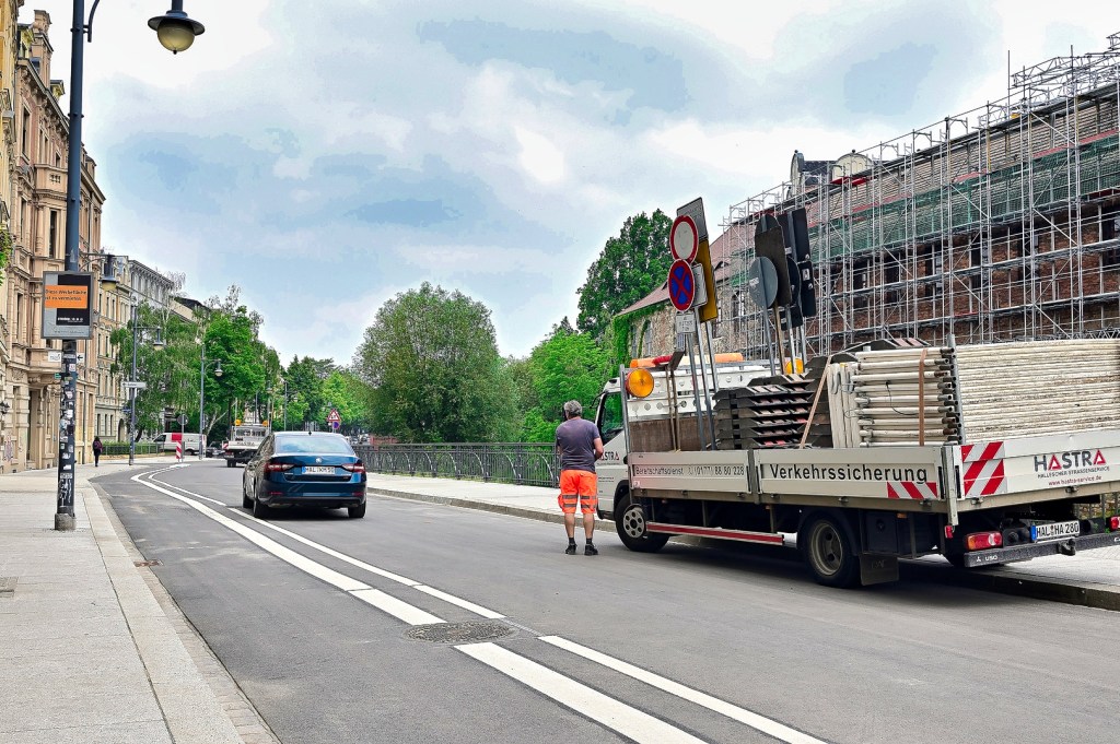 Die Verkehrsführung wurde geändert. Sie erfolgt aus Richtung Hallmarkt in Richtung Mansfelder Straße über die Klausbrücke rechts einbiegend in den Robert-Franz-Ring in Richtung Moritzburg. Dieses Teilstück ist bis zur Ankerstraße als Einbahnstraße deklariert. Ab Ankerstraße wird der Verkehr zweispurig weitergeführt. Die Durchfahrt ab Klausbrücke in die Mansfelder Straße ist nunmehr für den Durchgangsverkehr gesperrt. Fahrbahnmarkierungen sind noch nicht vollständig aufgetragen.