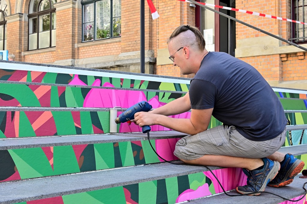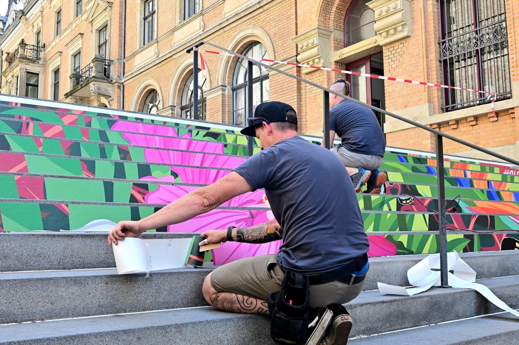 Hallmarkttreppe erhält neues buntes Motiv.