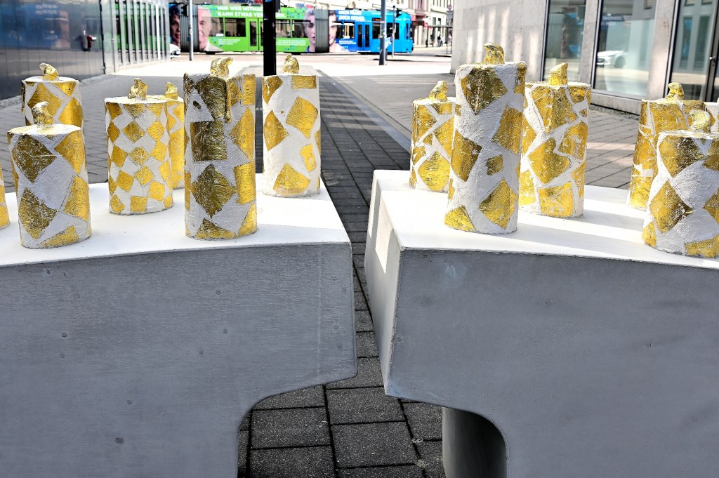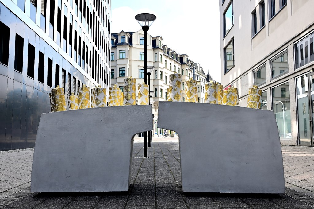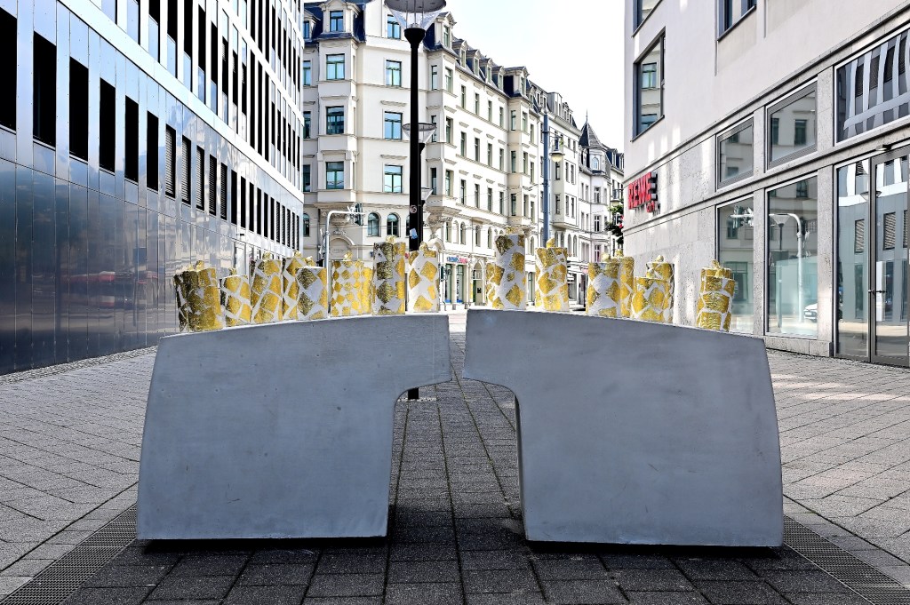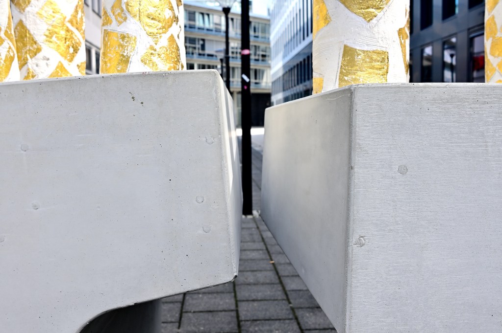 Anfang Juni wurde es aufgestellt, das Kunstwerk des Bildhauers Christoph Reichenbach. Es ist das sechste Kunstwerk, das um den Hallorenring aufgestellt bzw. installiert wurde. Die Betonskulptur mit dem Namen „1989“ soll neben den bereits vorhandenen, darunter vier großformatige Bildwerke hinter Glas im angrenzenden Einkaufszentrum und einer weiteren Skulptur, das Areal zwischen Hallorenring und Salzgrafenplatz künstlerisch aufwerten.