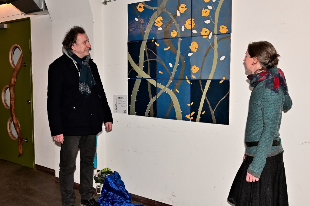 Heute wurde das zweite Kunstwerk im Rahmen der Ausschreibung „Kunst am Bau – Verpasste Zeit“ enthüllt. Mehr als 20 Künstlerinnen und Künstler aus der Region haben sich für eine zwei Wandgestaltungen und eine Gestaltung von drei „gläsernen Steinen“ beworben.