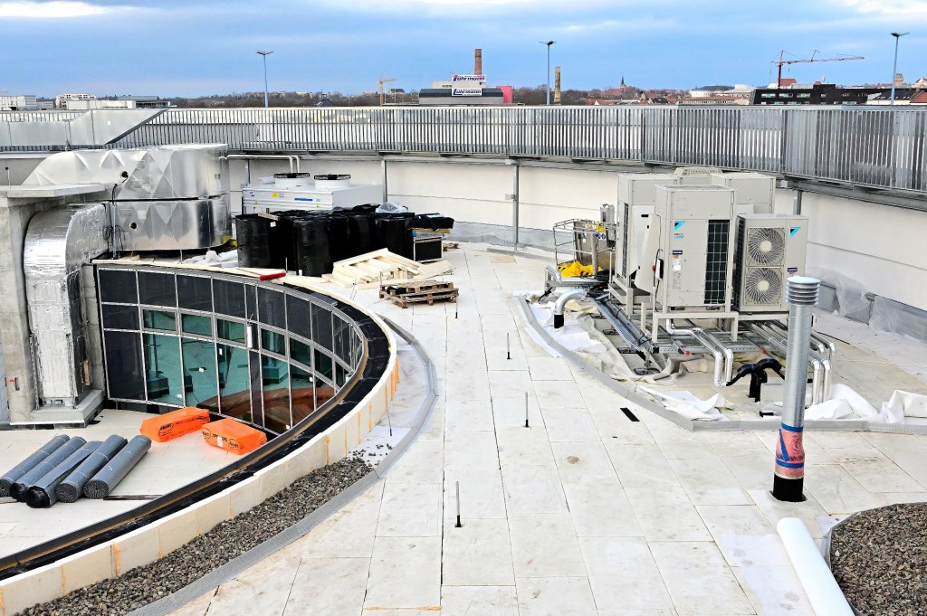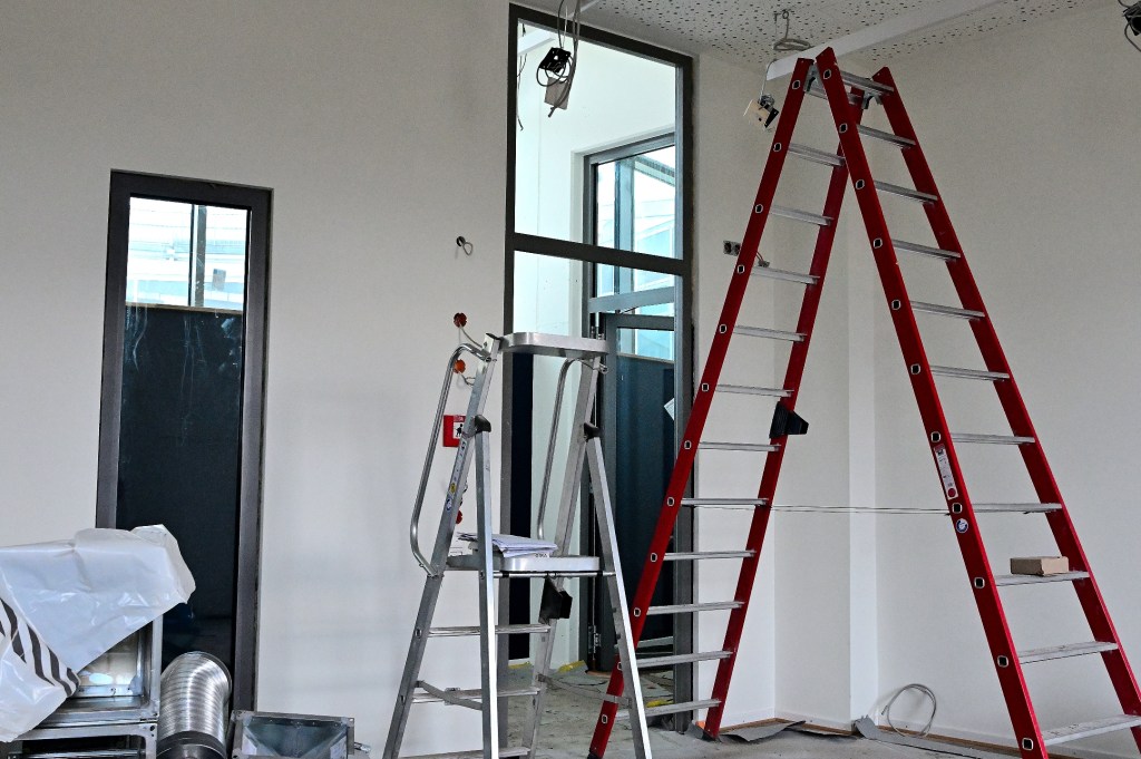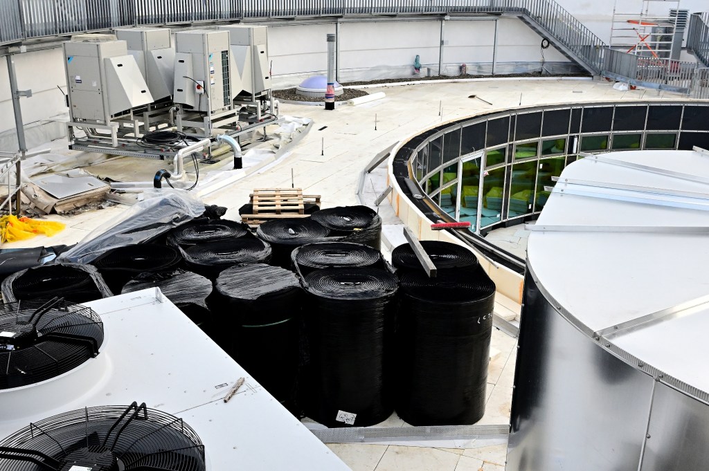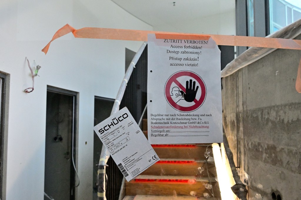 Viele der Geräte und Baustoffe lagern noch auf den Etagen und warten auf ihren Einbau.