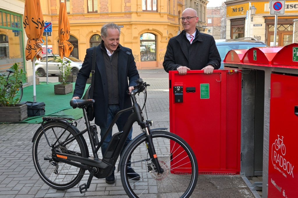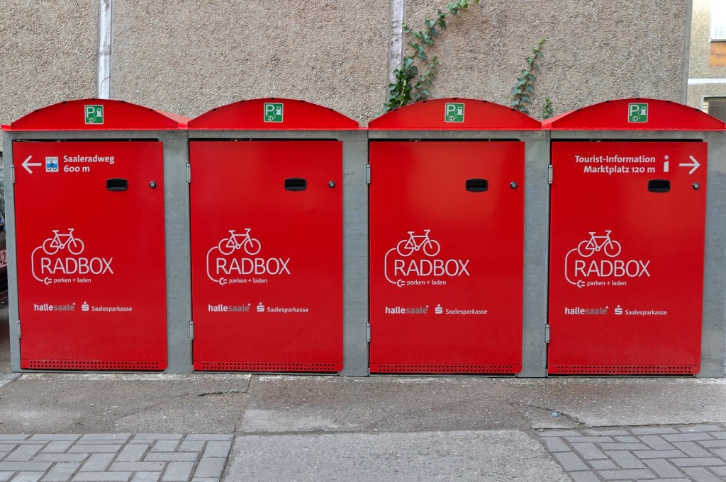 An sofort gibt es in der Altstadt von Halle, Graseweg, Ecke Oleariusstraße vier rote Fahrradboxen für Fahrradreisende, die ihre Fahrräder und Packtaschen sicher verstauen und nebenbei ihre Elektrofahrräder aufladen wollen. Mit einem Euro können die Räder für einen Zwischenstopp während eines Stadtbummels sicher verwahrt werden. Mit dem neuen Angebot werden die Maßnahmen zur touristischen Infrastruktur am Saaleradweg in der Händelstadt Halle (Saale) weiter verbessert. Zielstellung des Stadtmarketings ist es, Radtouristinnen und -touristen für einen Besuch nach Halle zu gewinnen und die große Auswahl an Kultur-, Freizeit-, Shopping- und gastronomischen Angeboten zu nutzen.