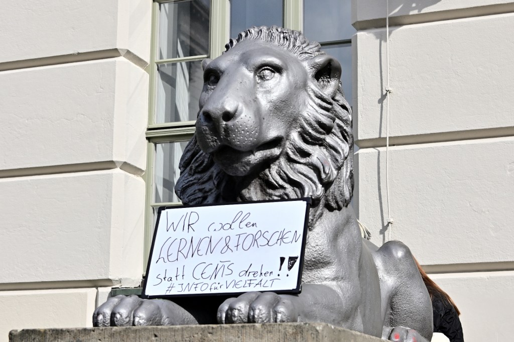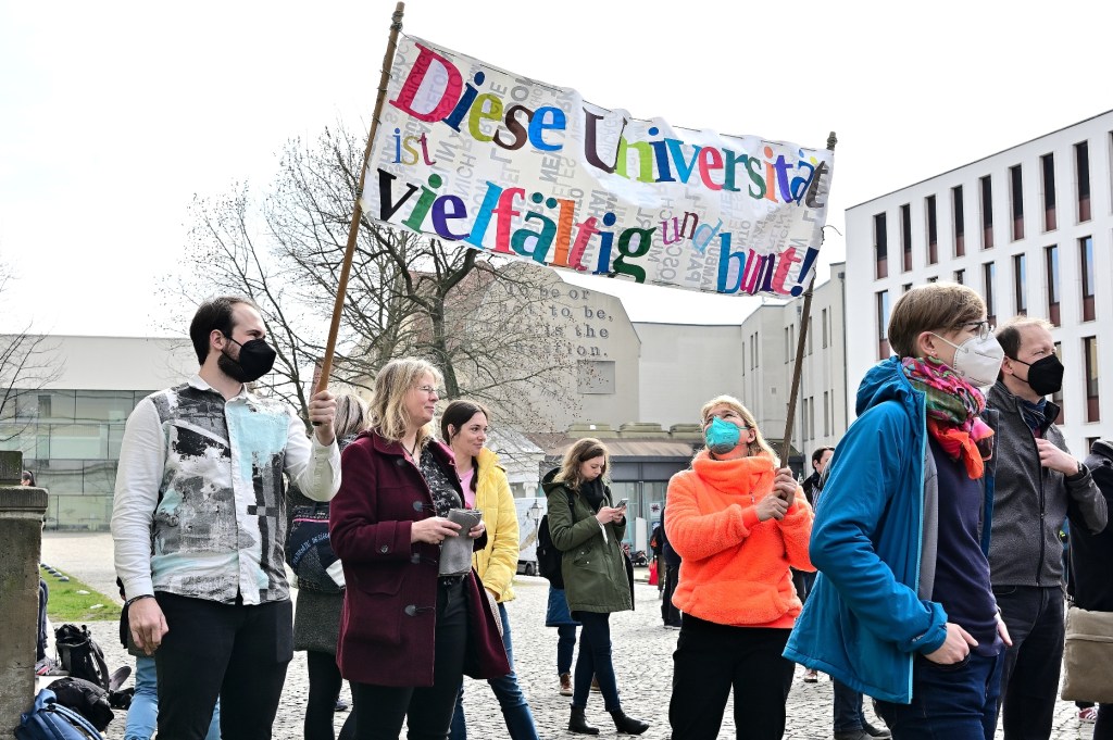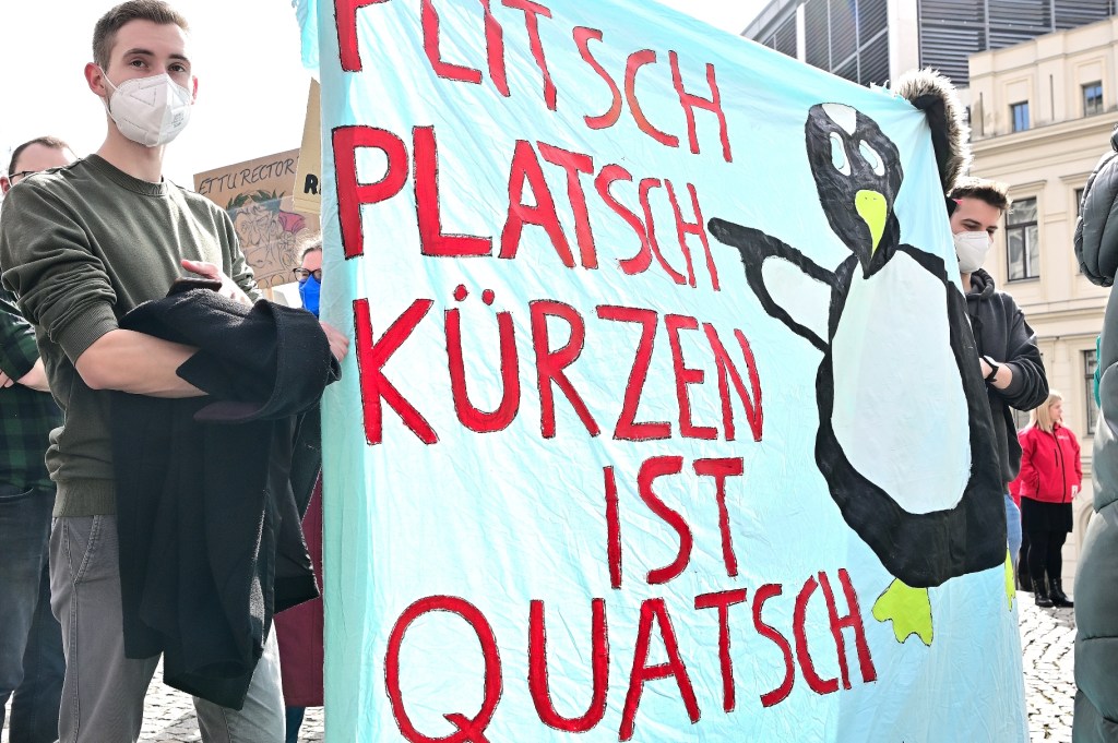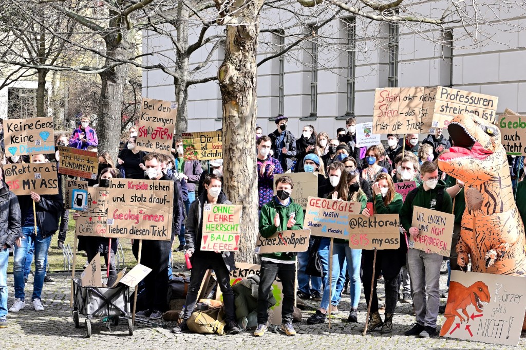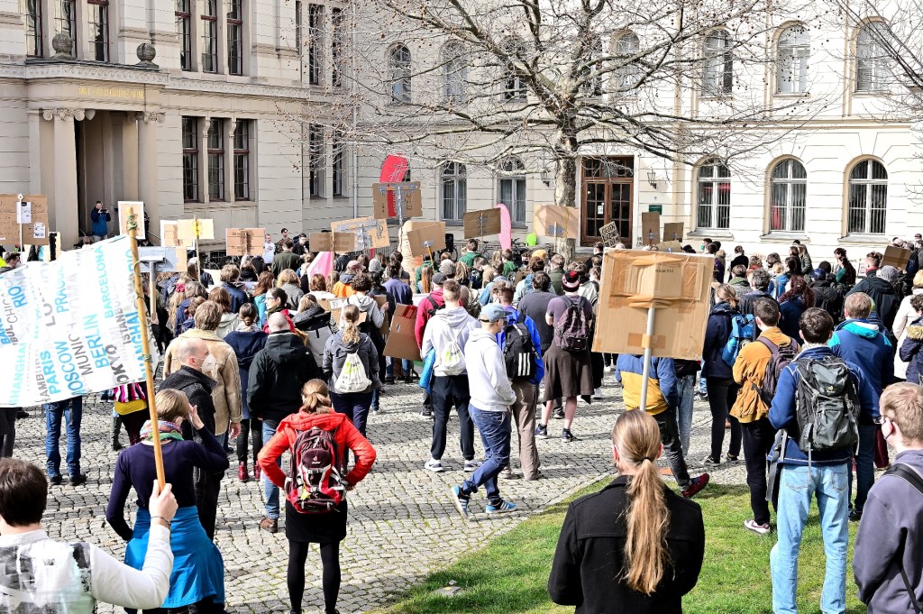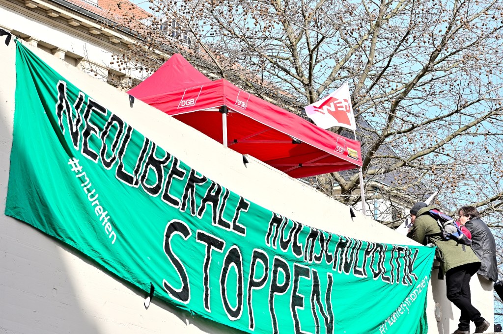 Auf dem Campus der Universität versammelten sich heute Studierende der Martin-Luther-Universität Halle-Wittenberg, um über den aktuellen Stand der Finanzierung der MLU zu informieren. Unterstützt werden sie von der GEW und Vertretern der Politik.