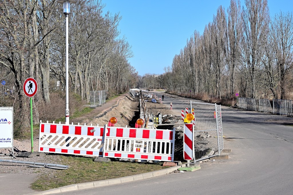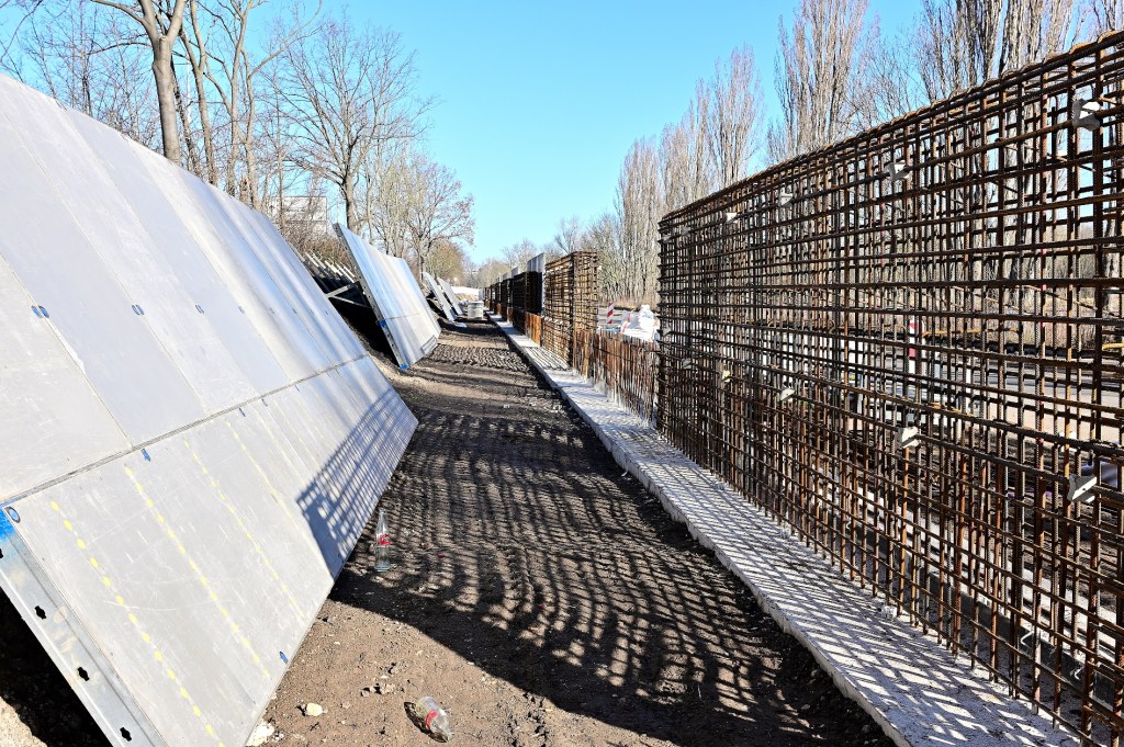 Auf der gesamten Länge von 1,25 Kilometer ist die aufgelöste Bohrpfahlwand und der darauf aufgesetzte Kopfbalken aus Bewehrungsstahl und Beton fertiggestellt. Auch die eigentliche Schutzwand ist bis auf ca. 250 Meter errichtet. Sie sollte eigentlich bis Ende Februar 2022 fertig sein. Umfangreiche Erdarbeiten und Aufschüttungen beidseitig des Dammes verstärken zusätzlich die Standfestigkeit des Bauwerkes und sind Grundlage für die Gestaltung der Übergänge und Wege.