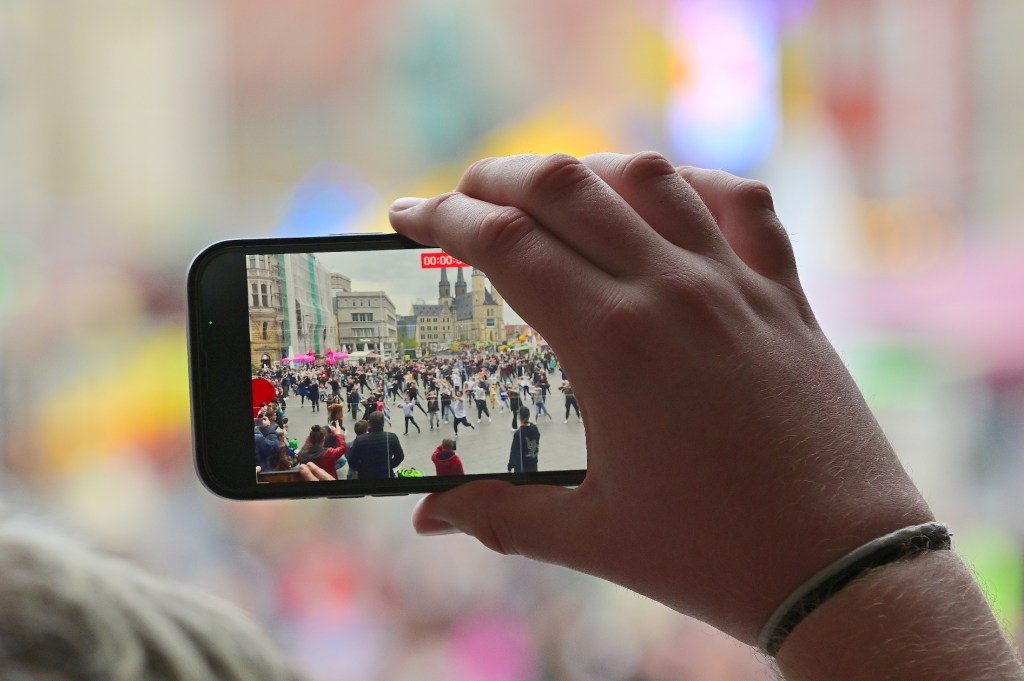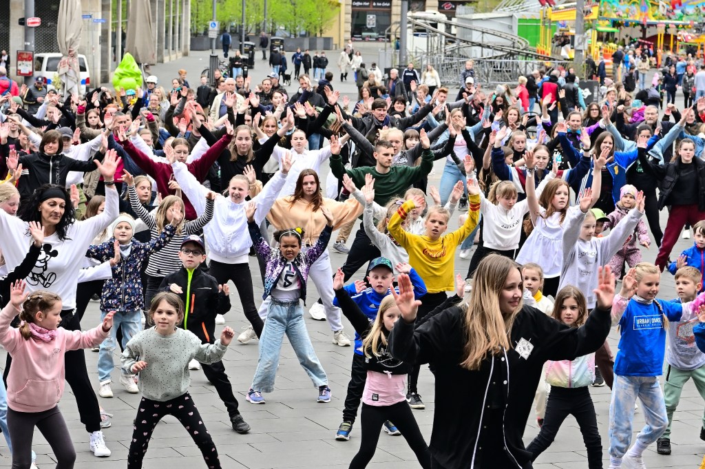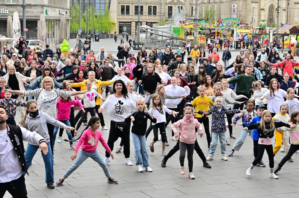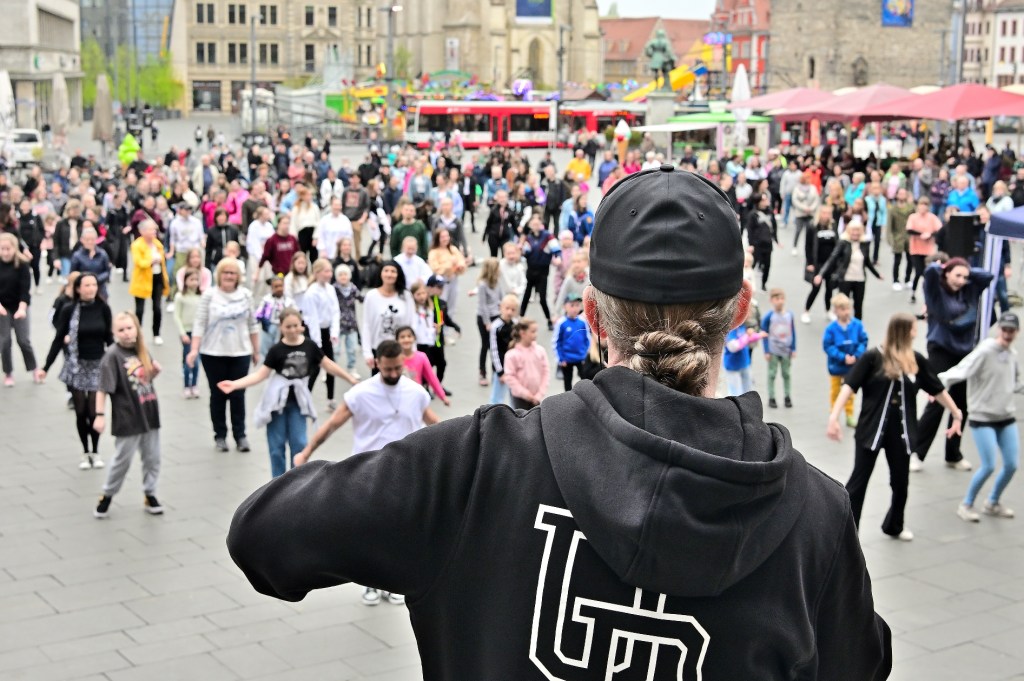 Die Pause seit dem letzten TanzFlashmob auf dem Marktplatz von Halle ist durch die Pandemie mittlerweile zwei Jahre her. Dennoch hatten sich an diesem Sonntag wieder mehrere hundert bewegungsfreudige Hallenserinnen und Hallenser vor dem Magistratsgebäude eingefunden.