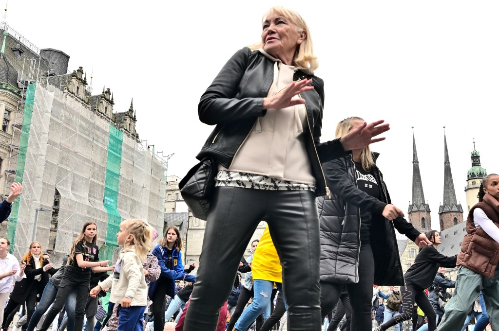 Tanzaktion auf dem Marktplatz von Halle.