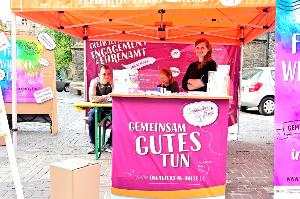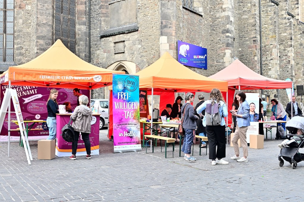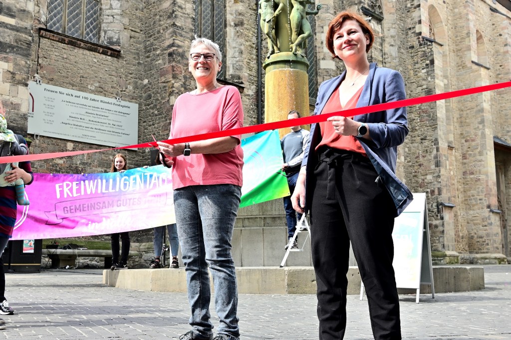 Mit dem Durchschneiden eines roten Bandes wurde heute der Freiwilligentag im Zeichen des Engagements für alle Generationen eröffnet. Mit Informationsständen vor der Ulrichskirche hat sich die Freiwilligenagentur Halle zum Auftakt des 18. Freiwilligentages präsentiert und Projekte vorgestellt. Am 13. und 14. Mai wollen sich hunderte Freiwillige in der Stadt Halle für eine gute Sache einsetzen. In diesem Jahr stehen 63 Mitmachaktionen zur Auswahl, bei denen in Vereinen und Initiativen, Schulen und Horten, Seniorenheimen und anderen Einrichtungen angepackt wird. Bis morgen werden freiwillige Helferinnen und Helfer in Vereinen, Kitas, Senioreneinrichtungen oder bei Müllsammelaktionen aktiv, um die Stadt ein wenig schöner zu machen und Gutes zu tun.