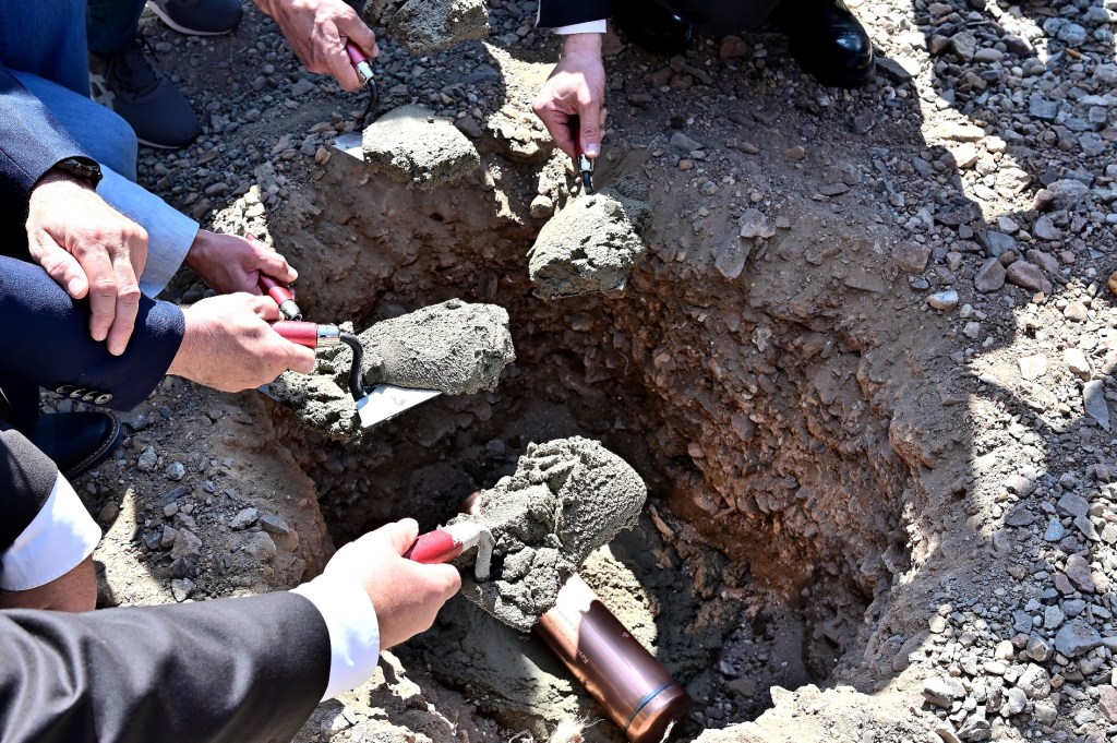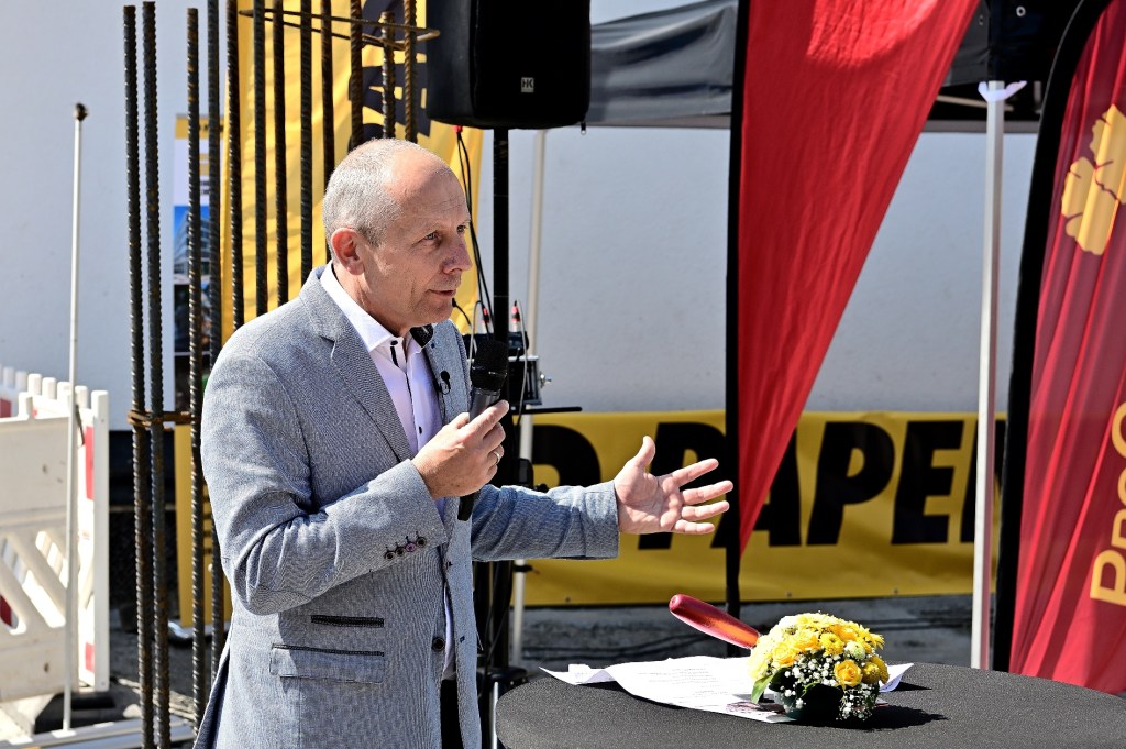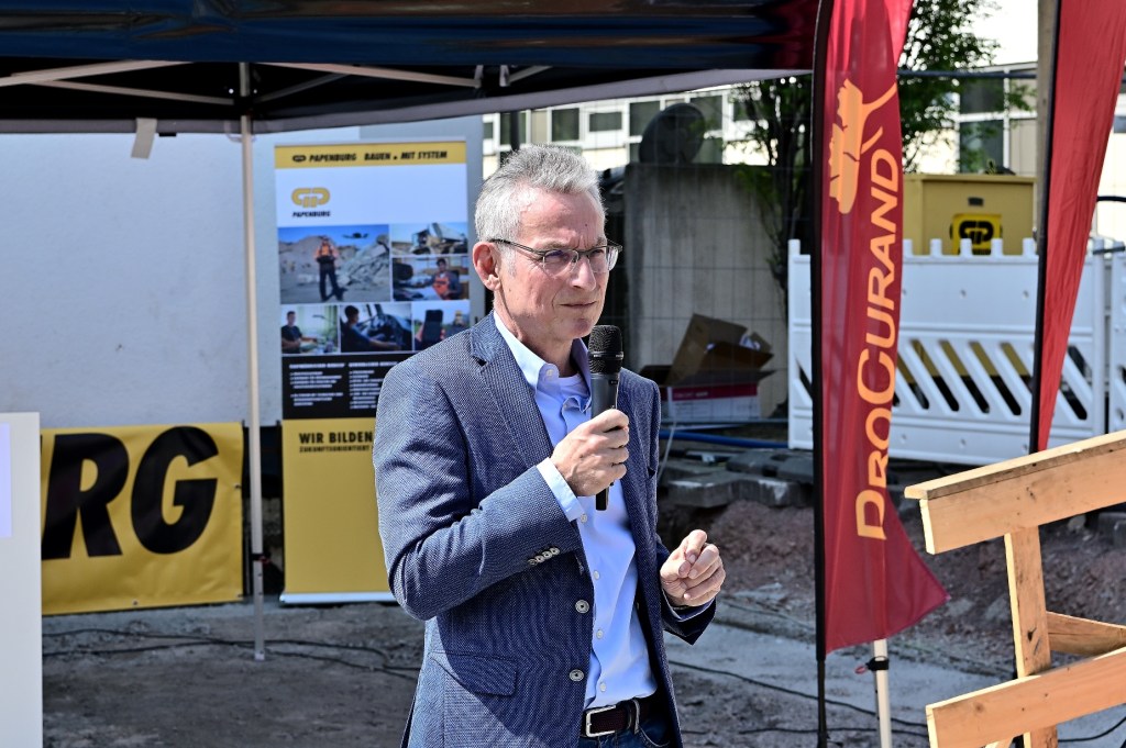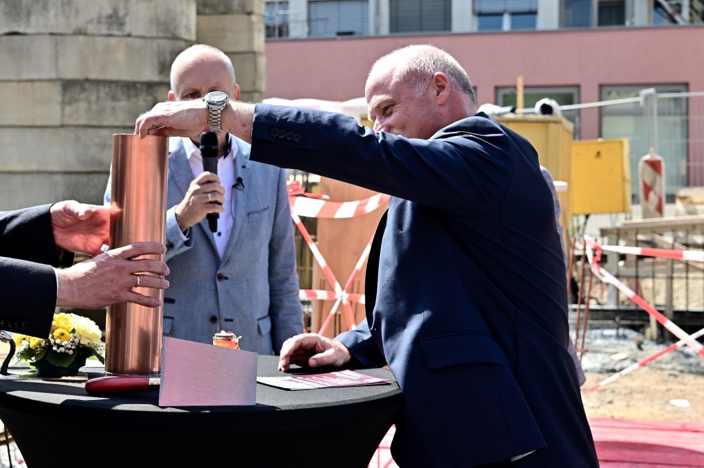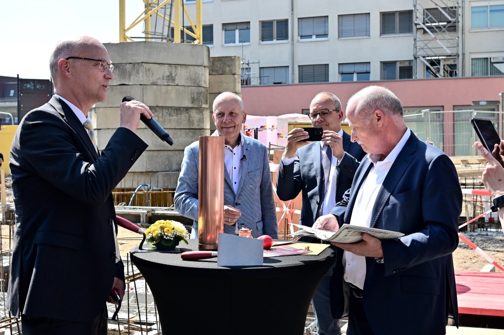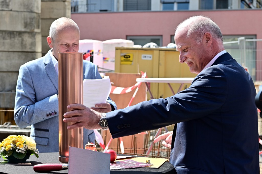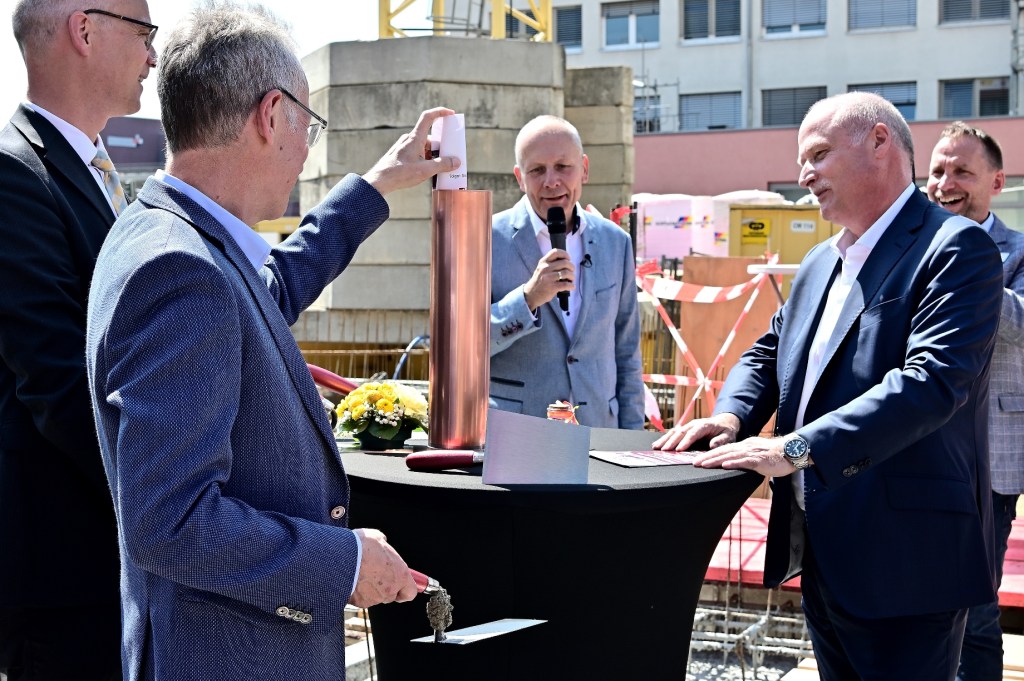Grundsteinlegung für den Neubau.