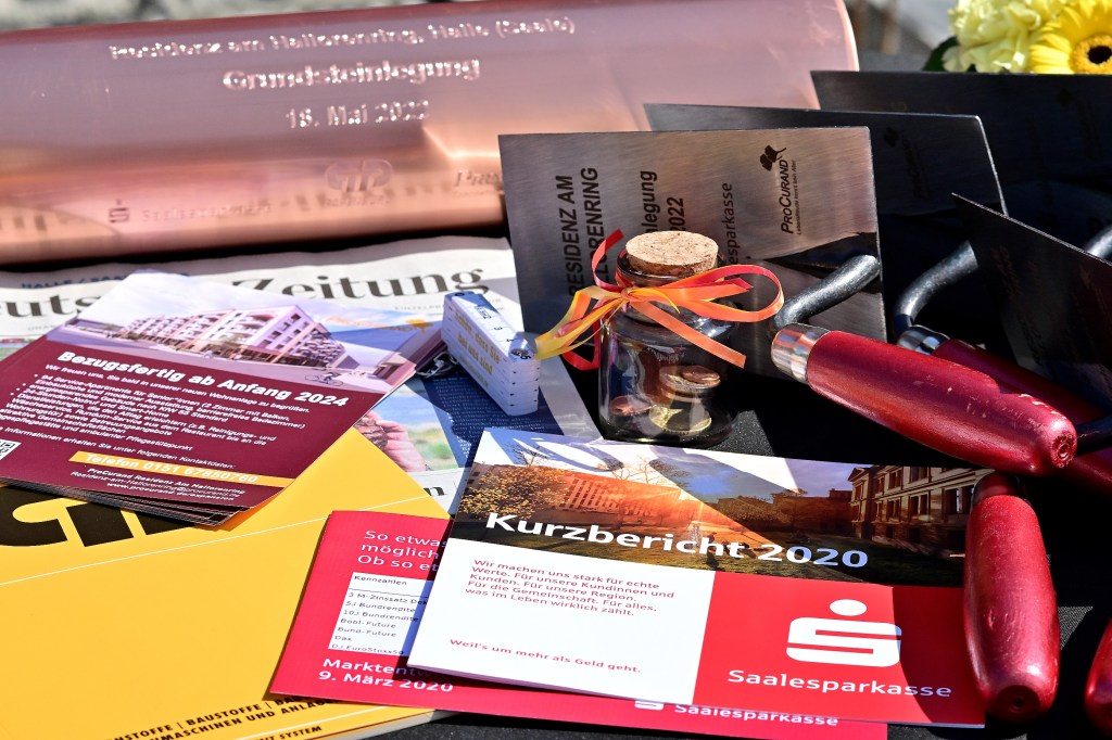 Geplantes Bauende ist das Jahr 2024. Investor und Bauherr ist die Saalesparkasse, Bauausführendes Unternehmen ist die GP Hochbau GmbH.