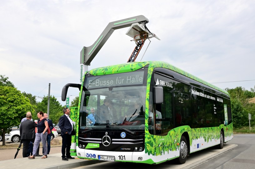 Die drei neuen E-Busse mit den Namen „Gustav Staude“, „Agnes Gosche“ und „Arthur Epperlein“ werden auf der Linie 21 der HAVAG zwischen „Kröllwitz“ und „Am Bruchsee“ eingesetzt. Die Aufladung erfolgt jeweils an der Endhaltestelle „Kröllwitz“ an einer dafür errichteten Ladestation. Dabei wird ein beweglicher Ladearm über dem Bus positioniert, der sich dann mit der Ladestation verbindet. Die Ladezeit beträgt bei leeren Batteriezellen 70 Minuten. Damit kann jeder Einzelne Bus durchschnittlich 200 Kilometer fahren.