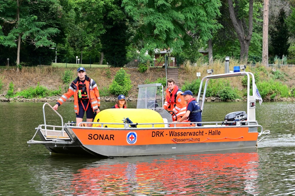 Die Wassertemperaturen lagen bei 20,5 Grad und die Lufttemperaturen bei 22 Grad Celsius. Eigentlich ideale Bedingungen für das sportliche Ereignis. Start war am Schleusengraben in Nähe der Schleuse Gimritz, von dort ging es Saaleabwärts bis kurz vor die Klausberge an der Emil-Eichhorn-Straße.