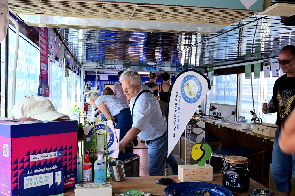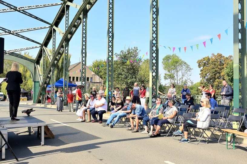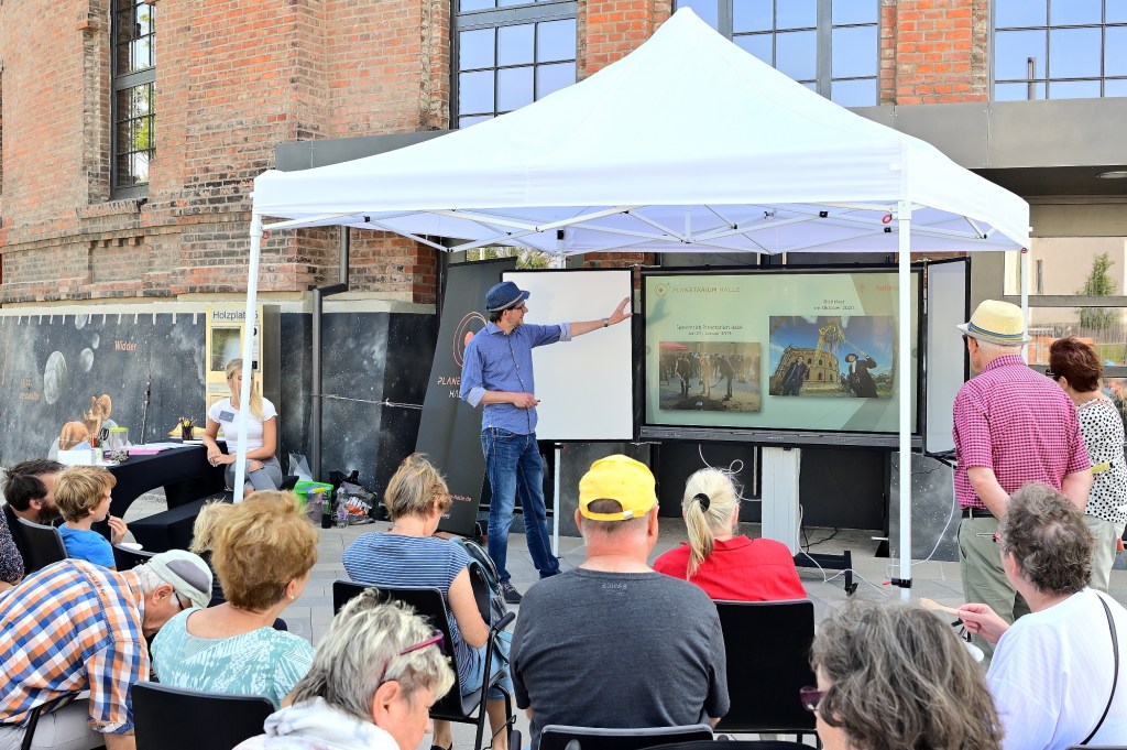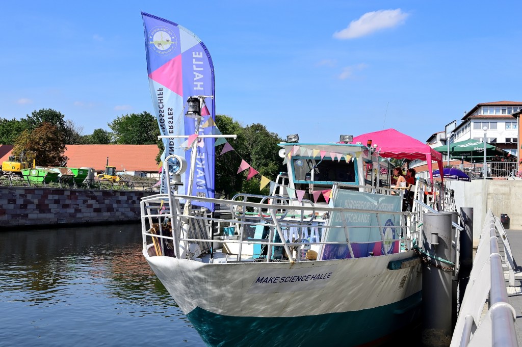 Von der Genzmer Brücke bis zum Multi-Media-Zentrum wurde gestern bei gutem Wetter einige Feste gefeiert und gleichzeitig Wissenswertes vermittelt. Es war die 8. Auflage des Genzmer-Brücken-Festes, das heute an der historischen Saalebrücke zwischen Wilhelm-Jost-Straße und Multi-Media-Zentrum veranstaltet wurde. Eingeladen hatten verschiedene Vereine, Anrainer und Einrichtungen rund um den Holzplatz. Es sind die bekannten Akteure, die diesen Tag kurzweilig und interessant gestaltet haben, wie das Planetarium Halle, das Künstlerhaus 188, der Postkult-Verein, das Salinemuseum, die Fliederwegschule am Holzplatz, der Park des Dankens, des Erinnerns und des Hoffens, das Bürgerforschungsschiff „Make Science Halle“ und der Verein „Inklusion von Menschen mit Behinderung“. Und natürlich war auch Platz für engagierte junge Leute, die sich gegen die Verschwendung von Nahrungsmitteln einsetzen und kostenlos Obst verteilten.