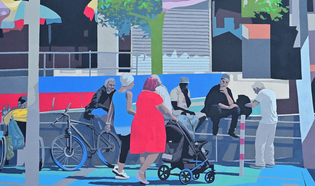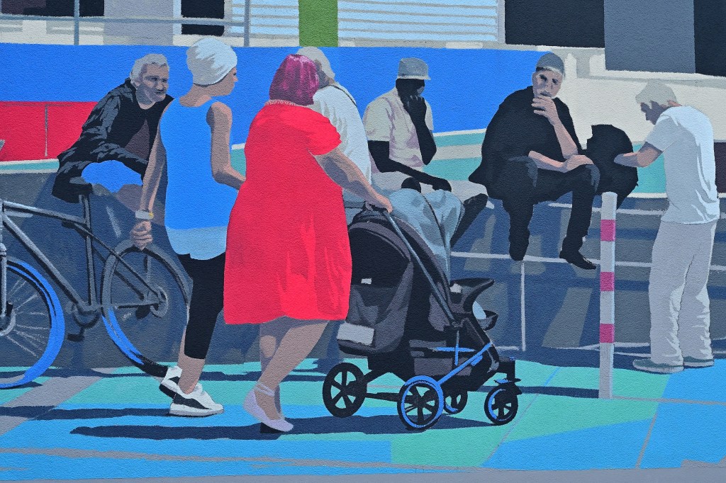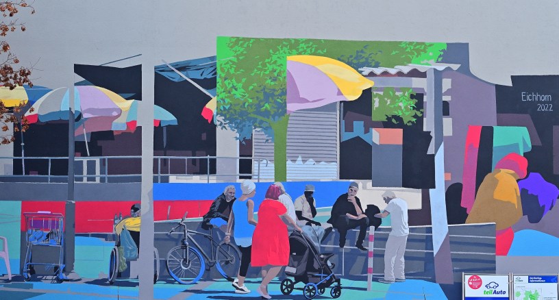 Philipp Eichhorn ist der Künstler, der gleich um die Ecke sein Wohnhaus verschönt hat. Es sind Eindrücke aus dem Alltagsleben der Stadt, die ihn inspiriert haben, die unschöne Wand in ein Kunstwerk zu verwandeln.